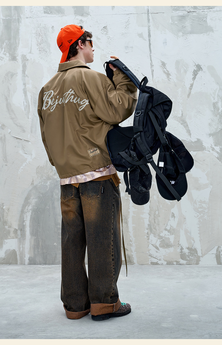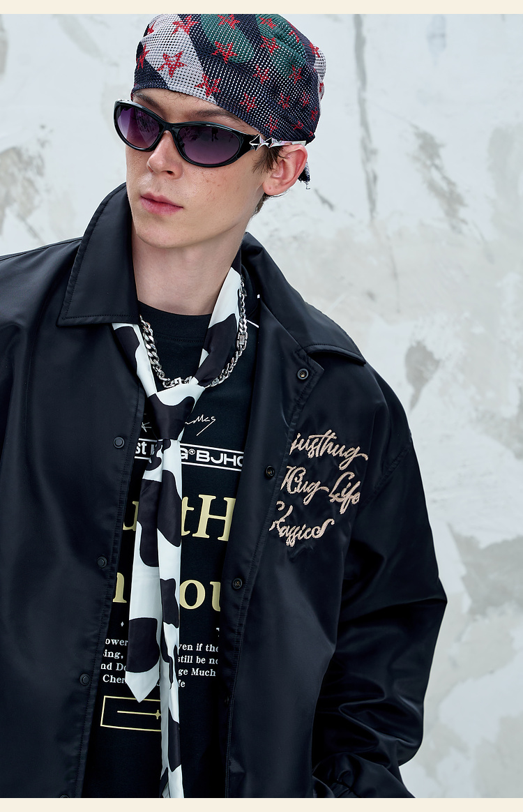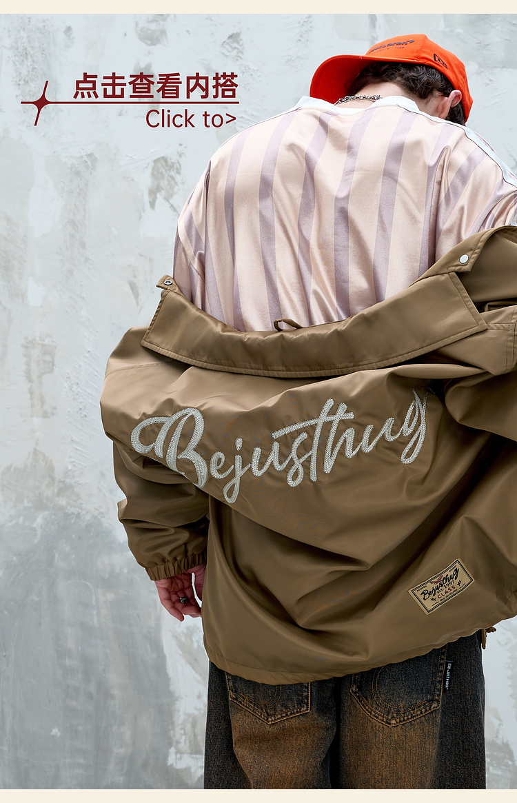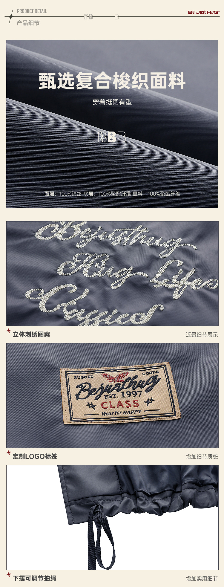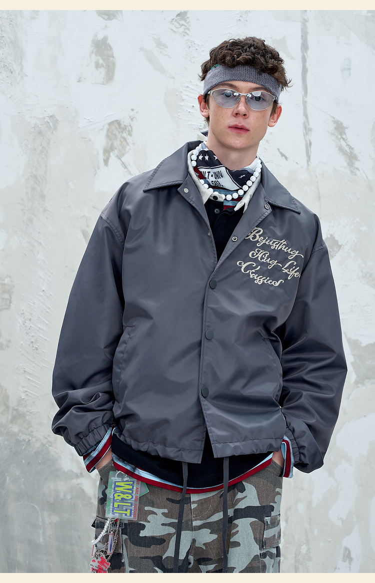 BJHG不计后果美式复古外套男女款秋季新款刺绣棒球服教练夹克外套