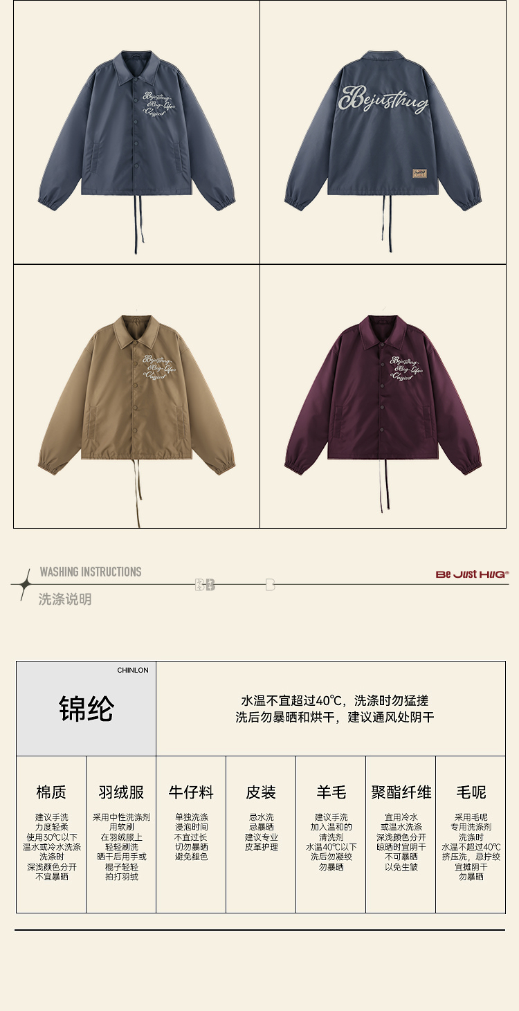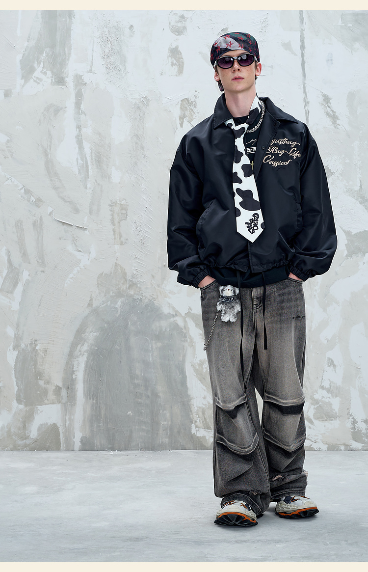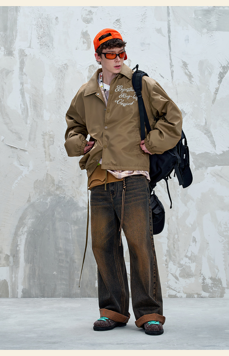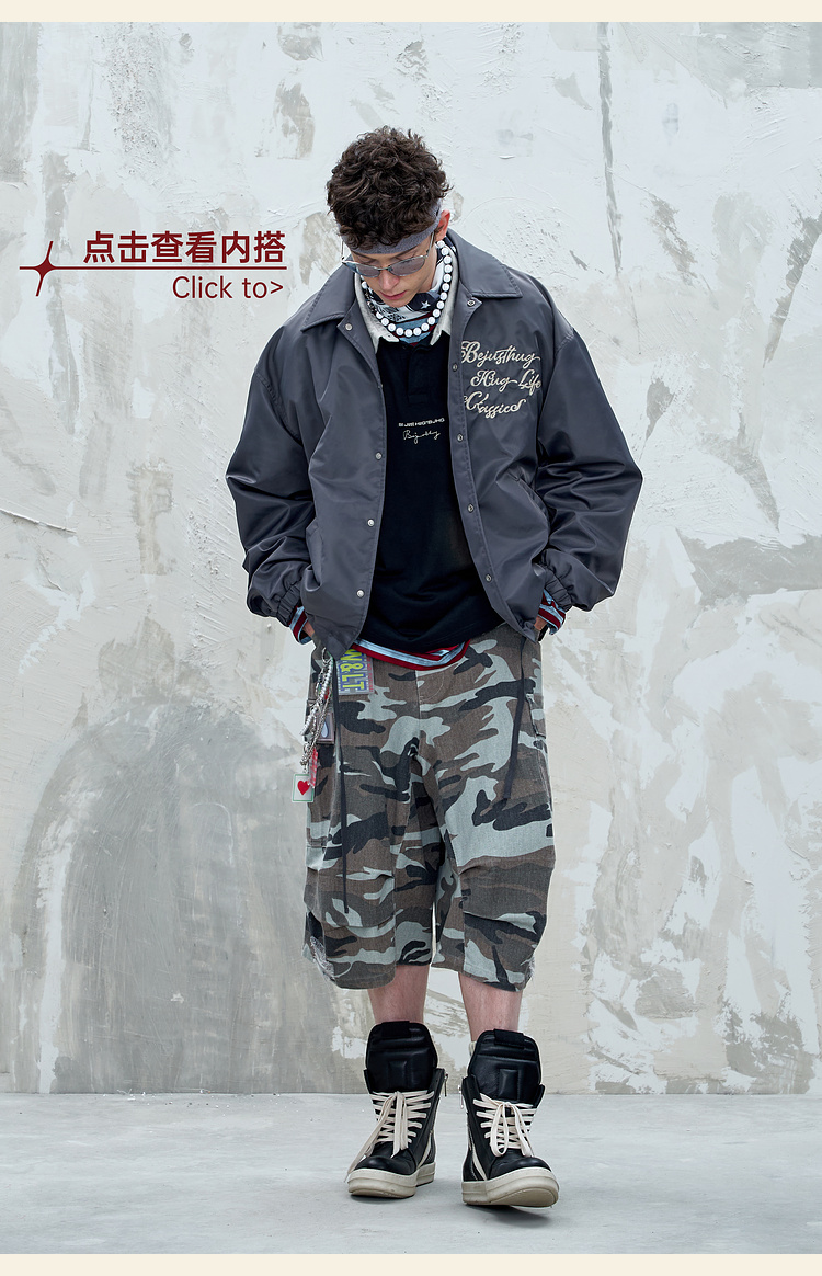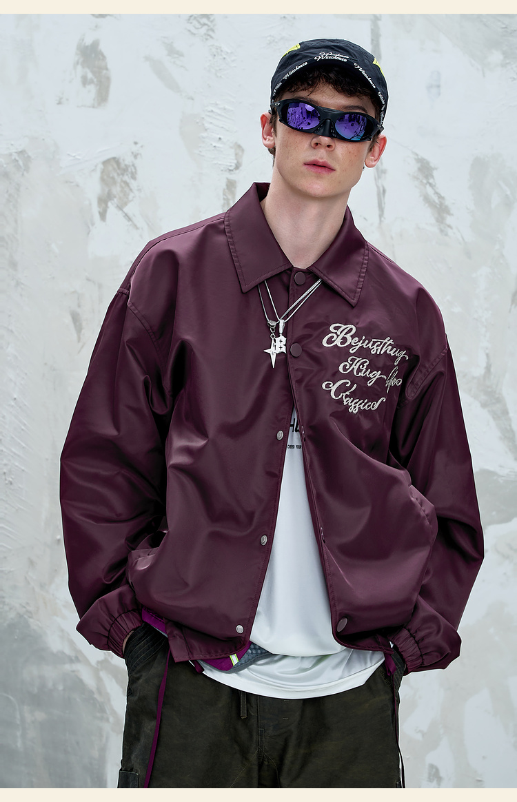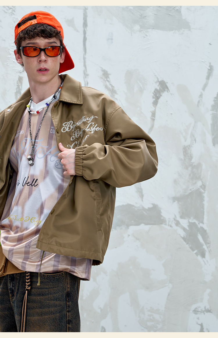 BJHG不计后果美式复古外套男女款秋季新款刺绣棒球服教练夹克外套