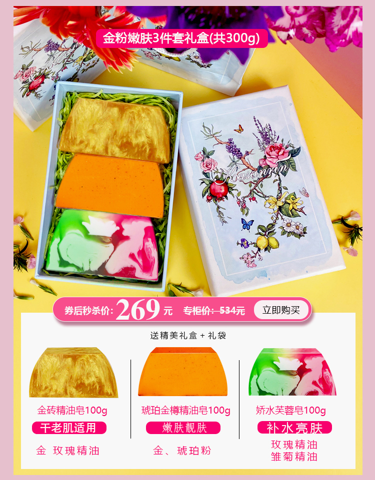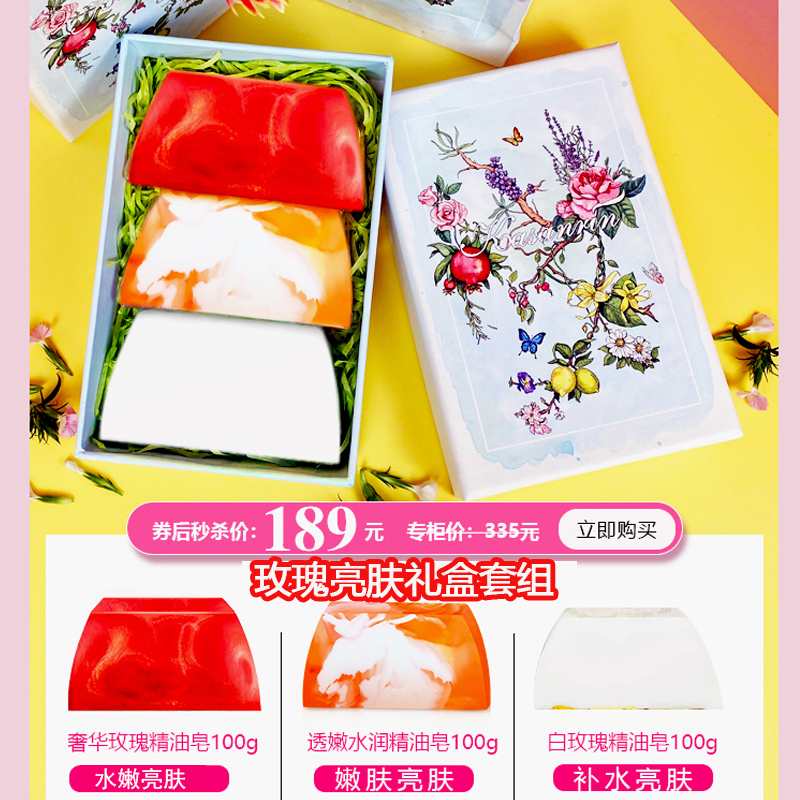 【礼盒套组】三块100克精油皂组合,(奢荣玫瑰皂+玫瑰奶油皂+清新古龙皂各100克)送礼自用均可。