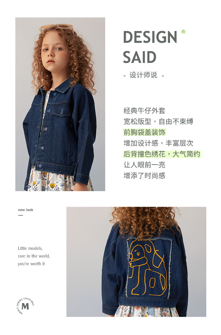 mette童装男女童上衣春秋新款中大儿童洋气韩版时髦牛仔外套