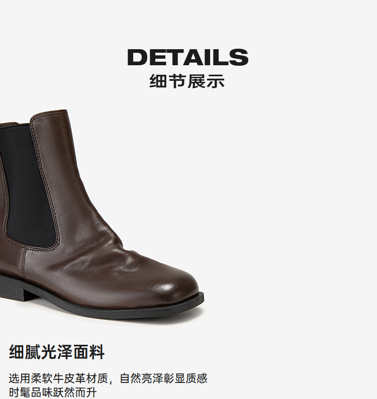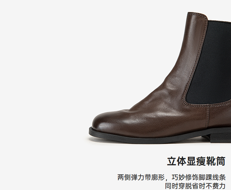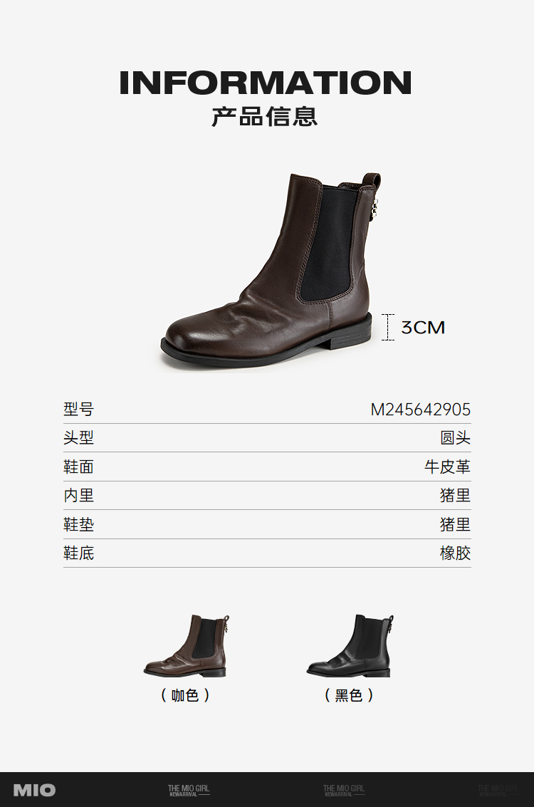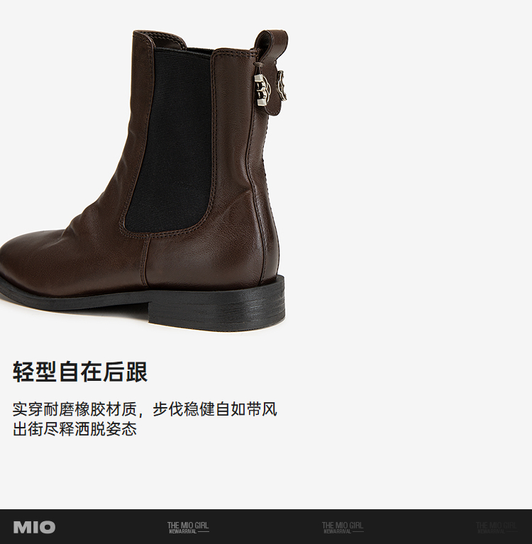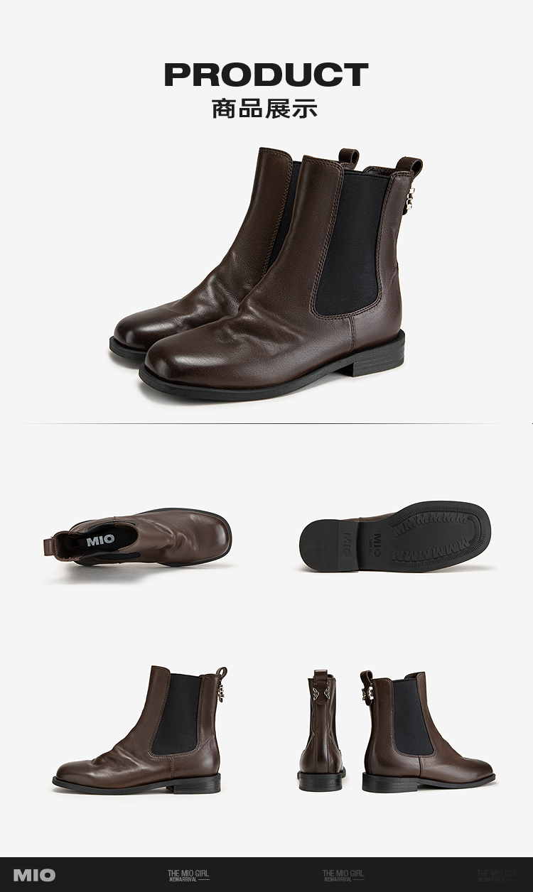 MIO米奥冬季圆头低跟复古休闲靴厚底牛皮革时髦切尔西靴女M245642905