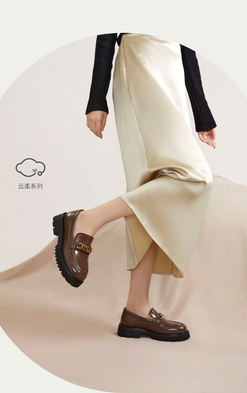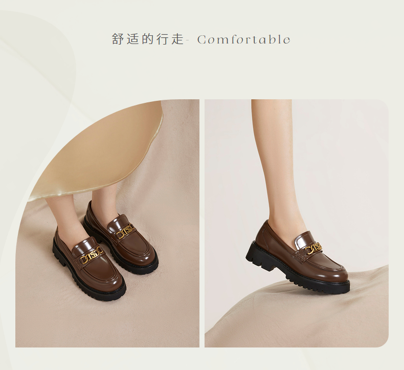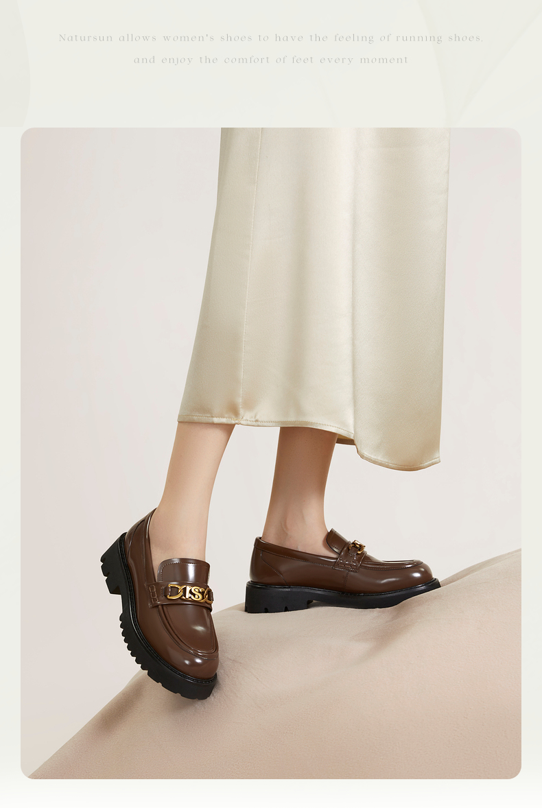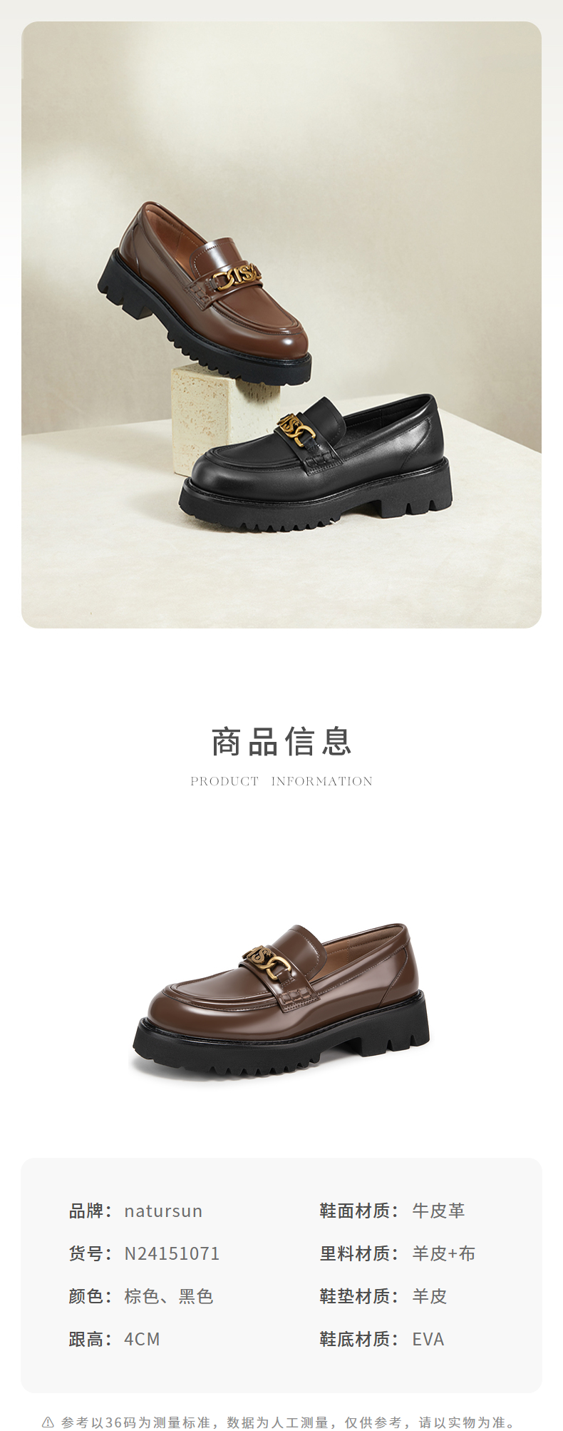 natursun乐福鞋女秋季款软底内增高女鞋厚底英伦风小皮鞋N24151071