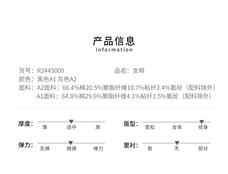 VIVIAN LIU薇薇安刘R2415003春女装新款后腰松紧斜插兜直筒裤