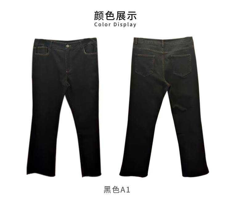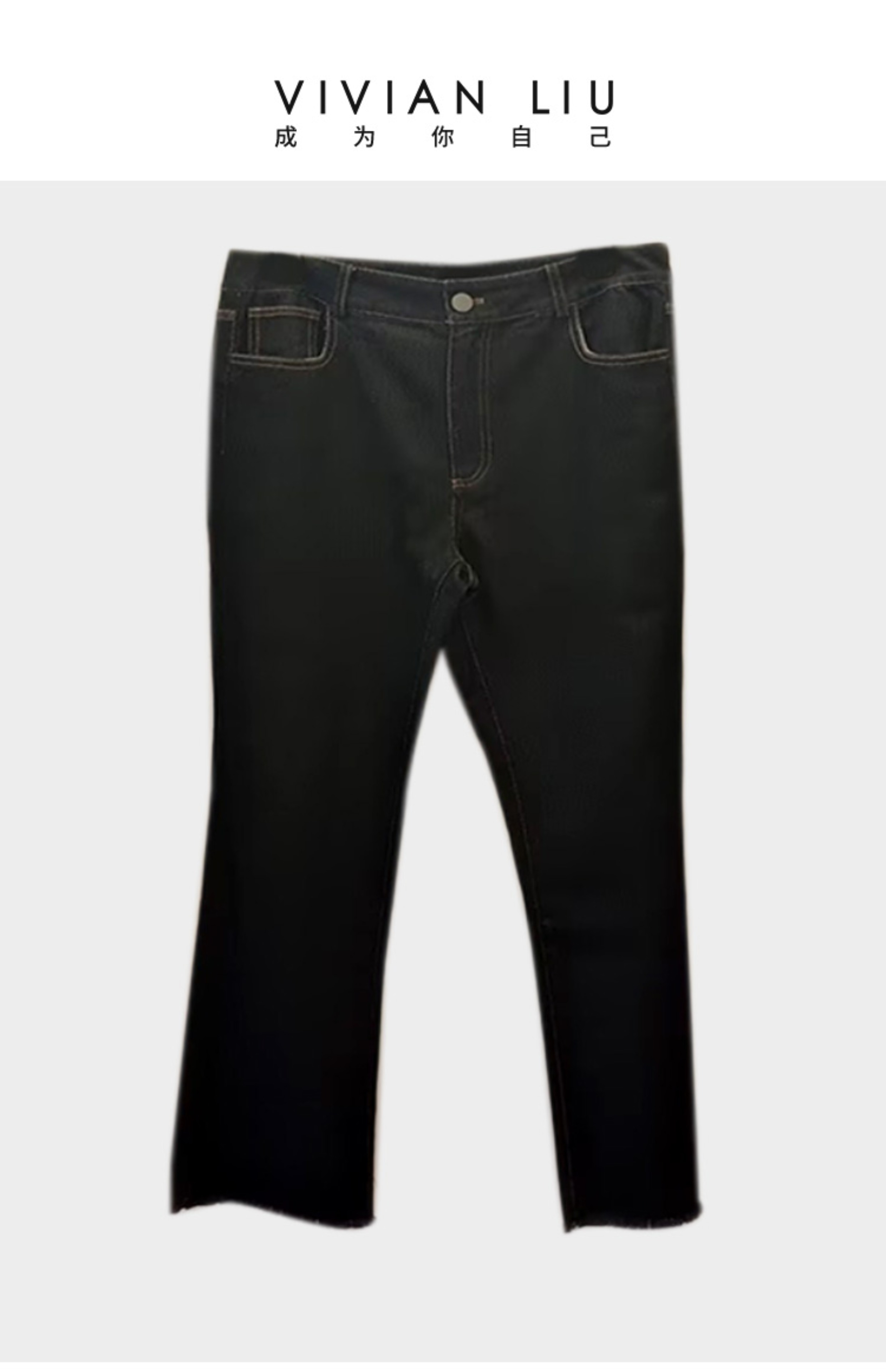 VIVIAN LIU R2445009初秋女装新款斜插兜显瘦微喇牛仔休闲长裤