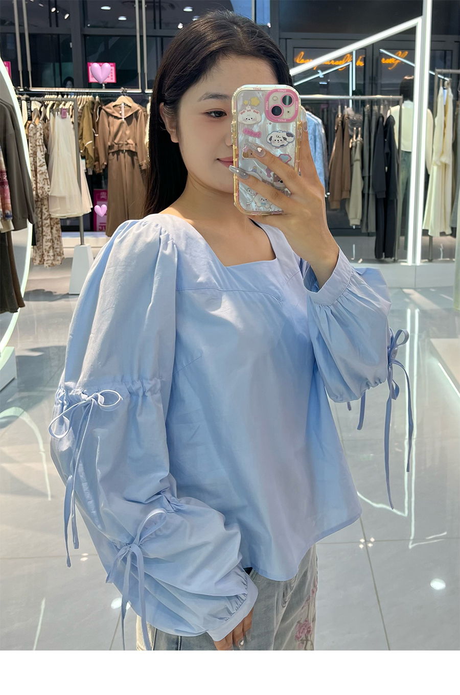 P&X设计师女装秋季气质泡泡袖方领设计感短款小衫 824328093 蓝色