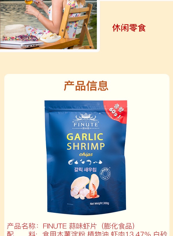山姆FINUTE蒜味虾片 300g