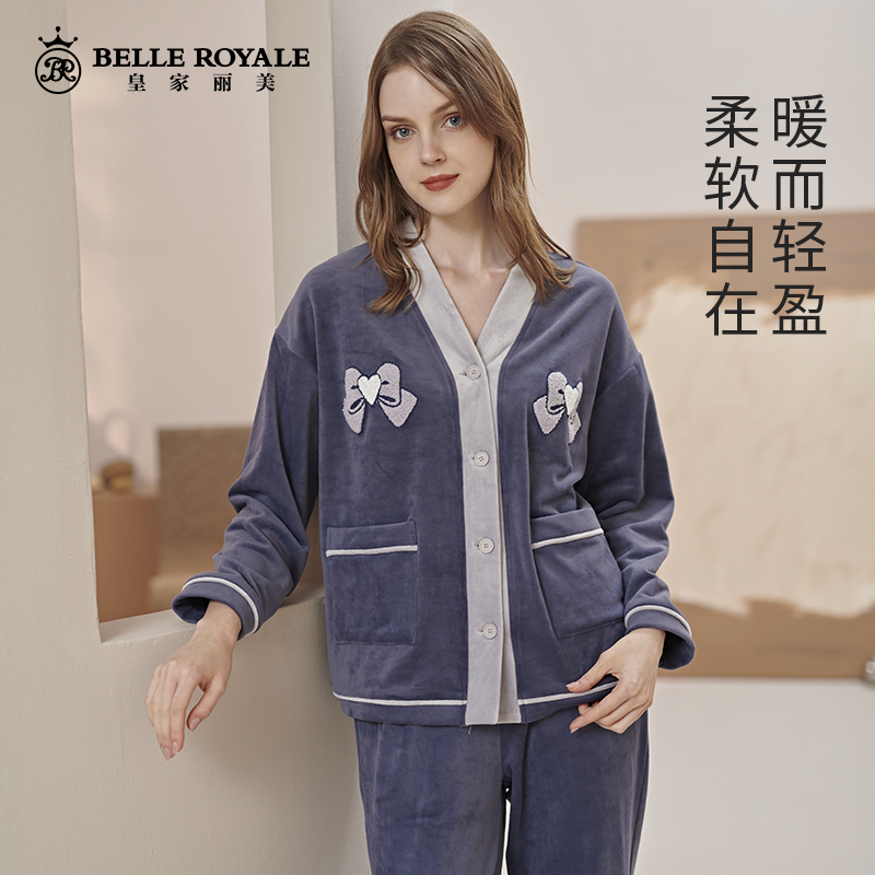 皇家丽美冬季睡衣女双面澳毛绒保暖家居服套装JJT9759