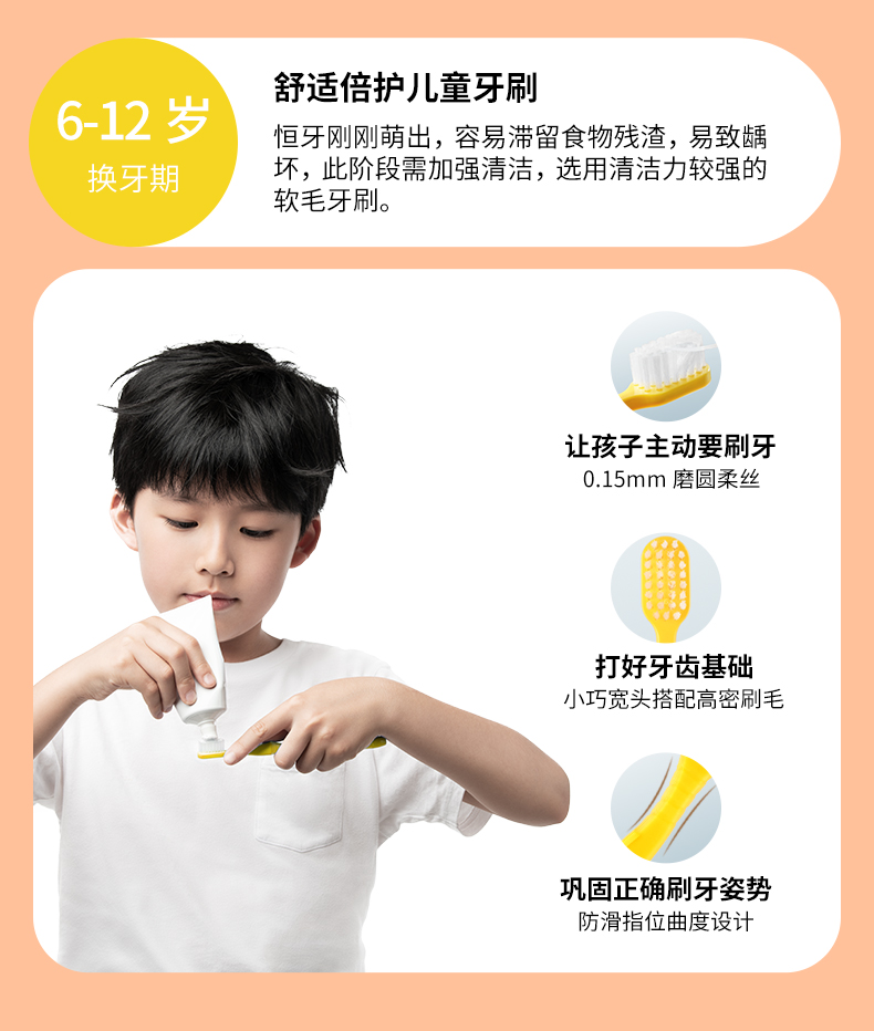 日本惠百施舒适倍护儿童牙刷6岁~12岁使用/112754 颜色随机小巧宽头搭配