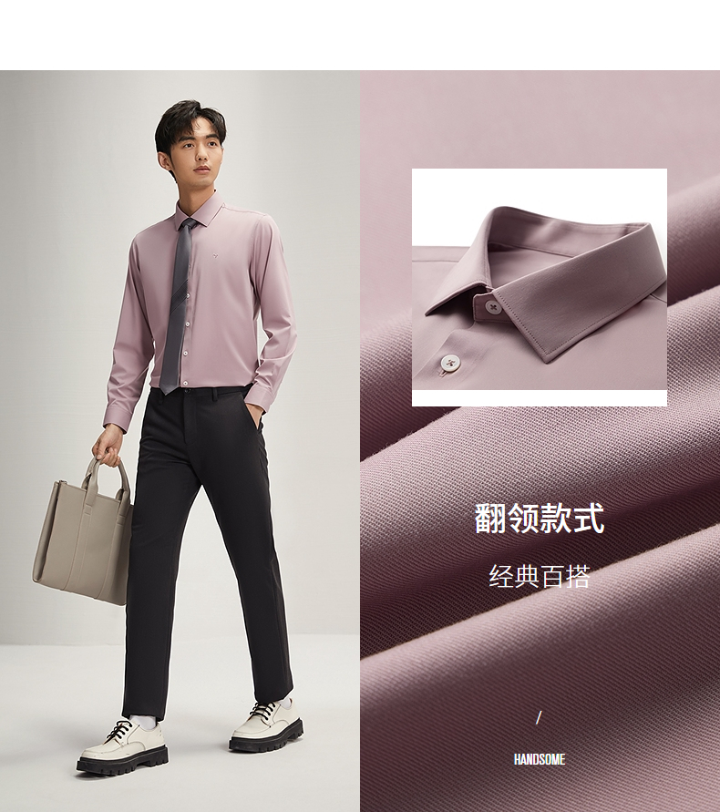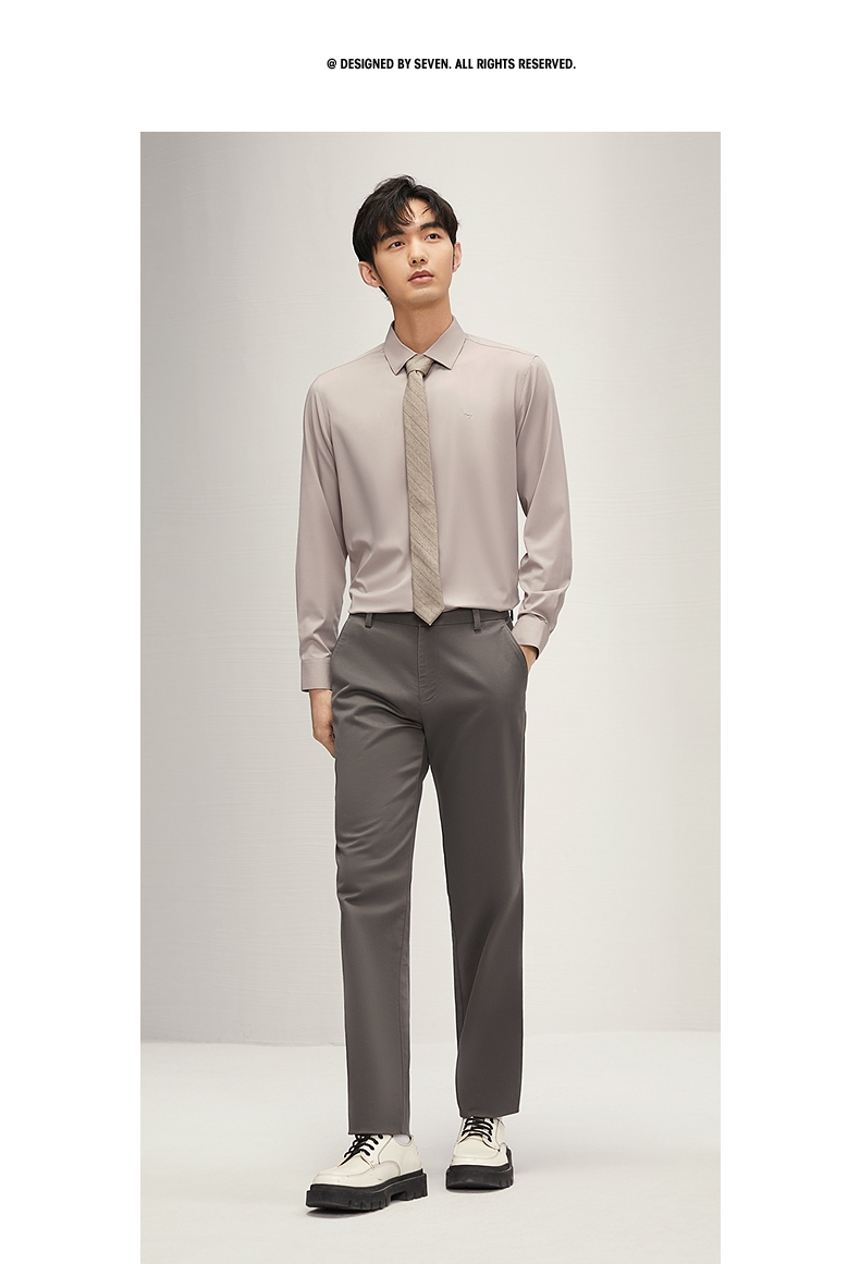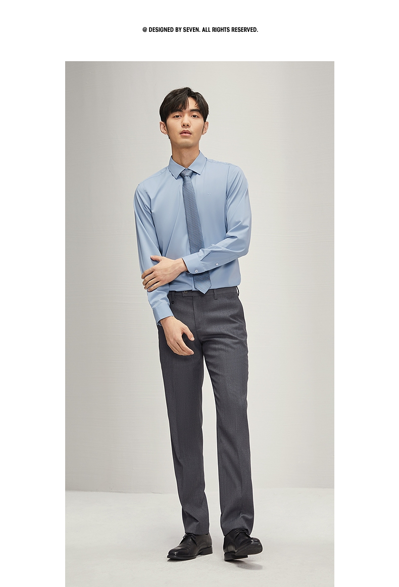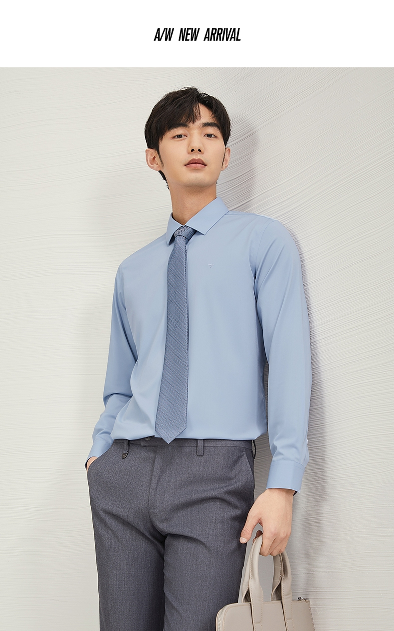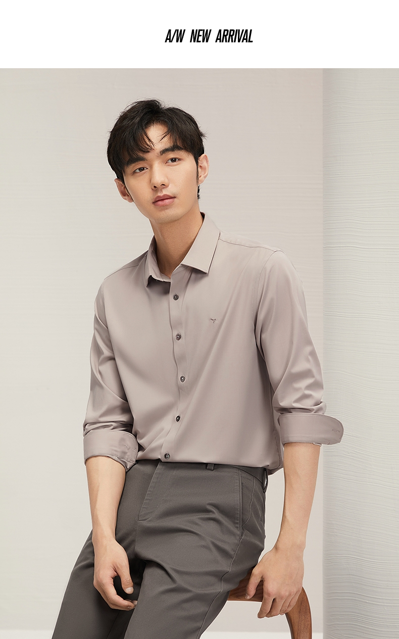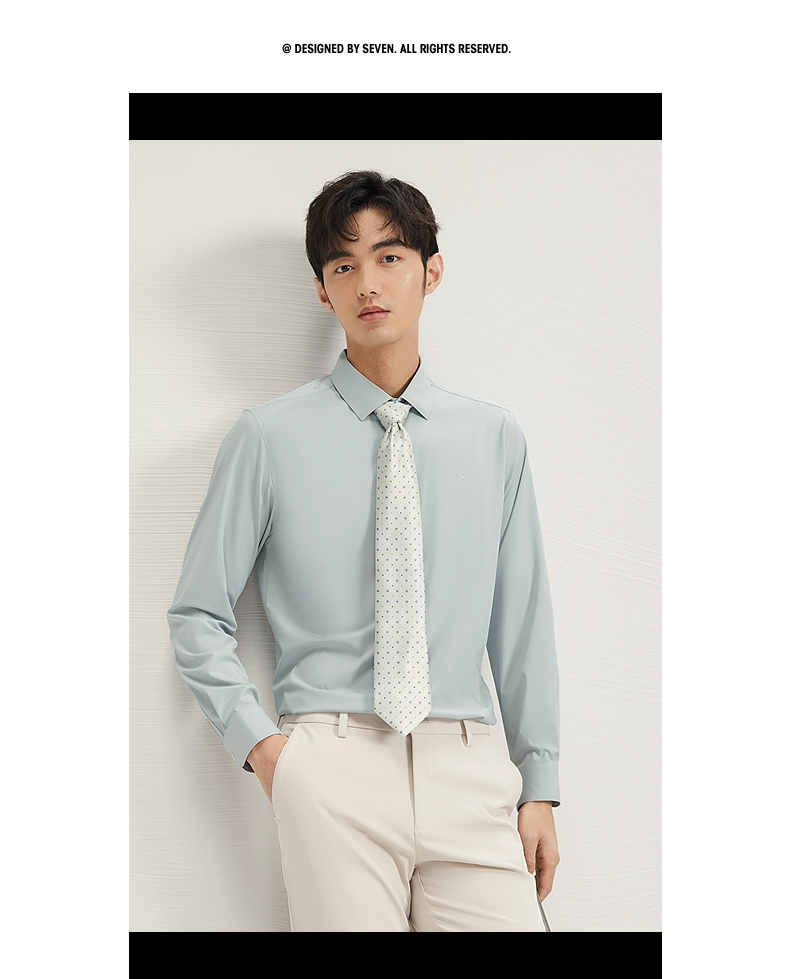 【兰精莫代尔】柒牌男士长袖衬衫男2024秋季新款商务百搭翻领衬衣 127A70990