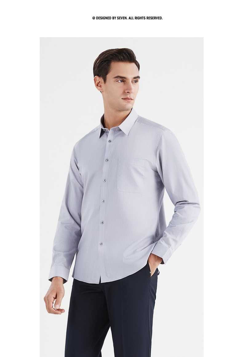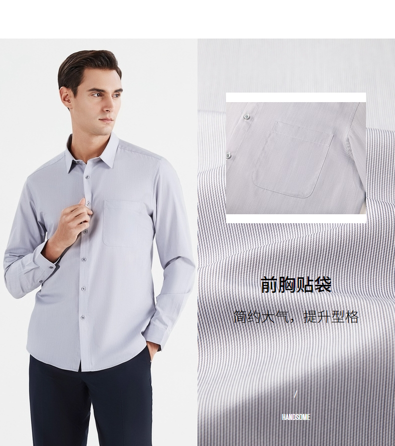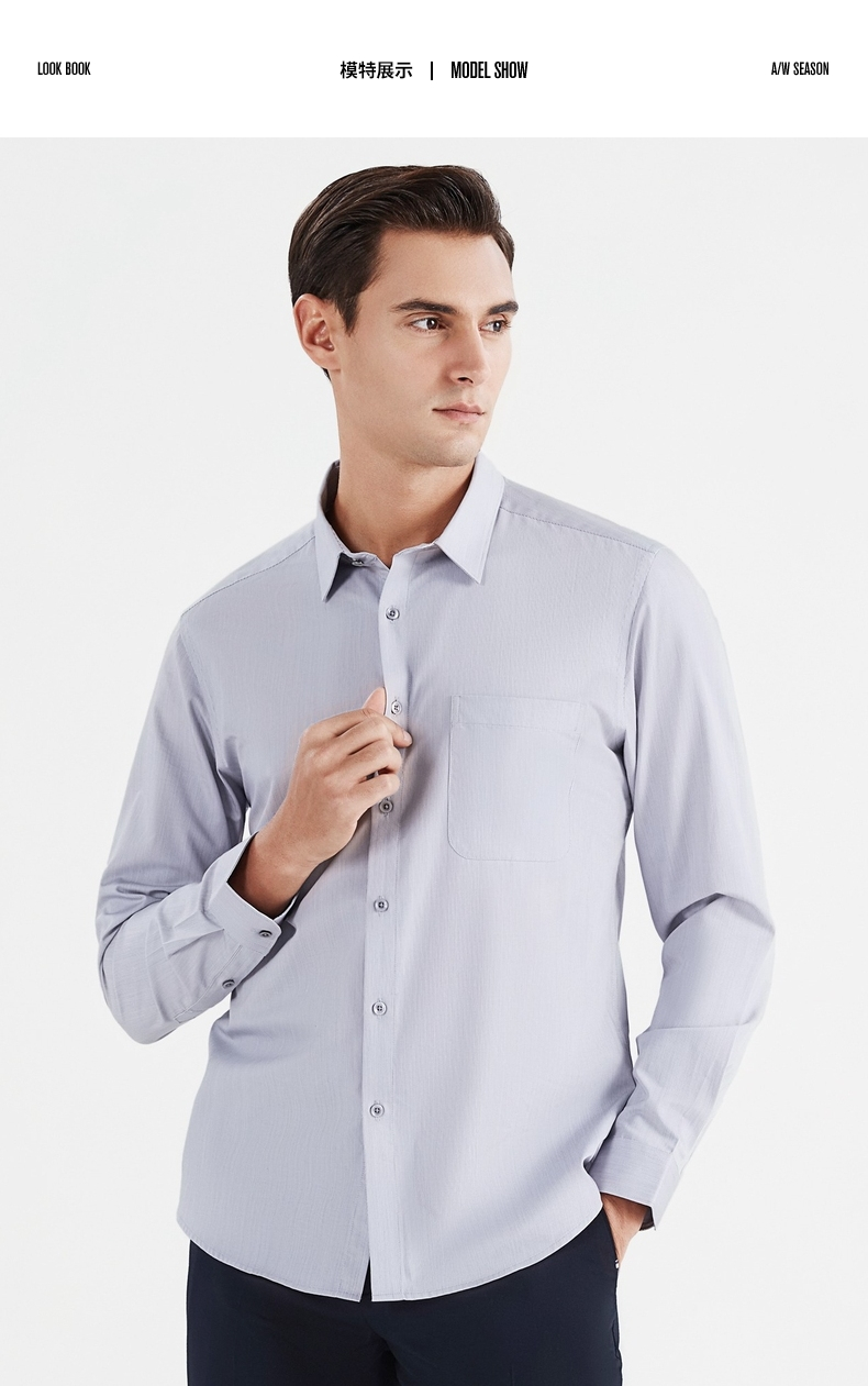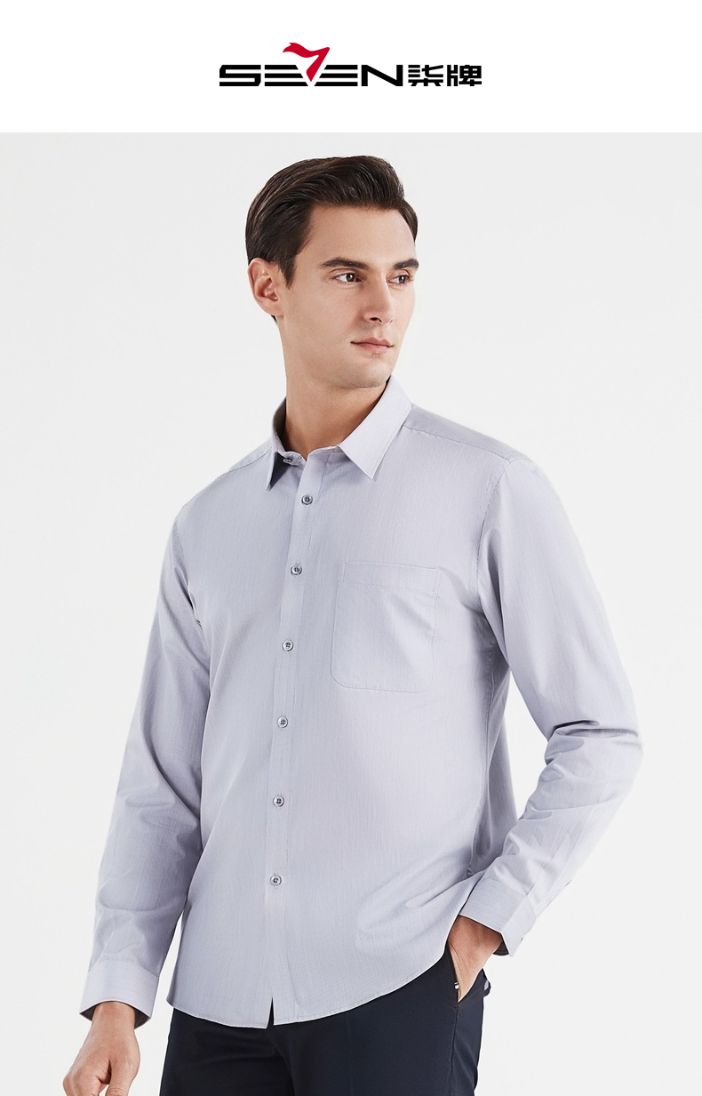 【特价】【含桑蚕丝】柒牌男士衬衫商务休闲春季新款长袖翻领贴袋衬衣122A70540