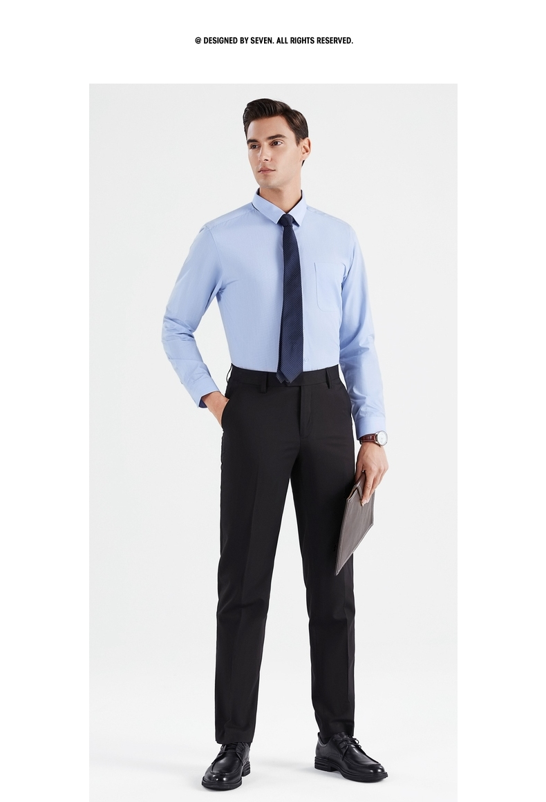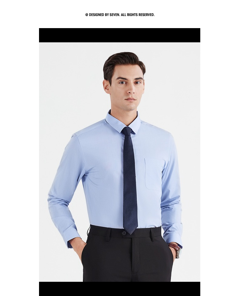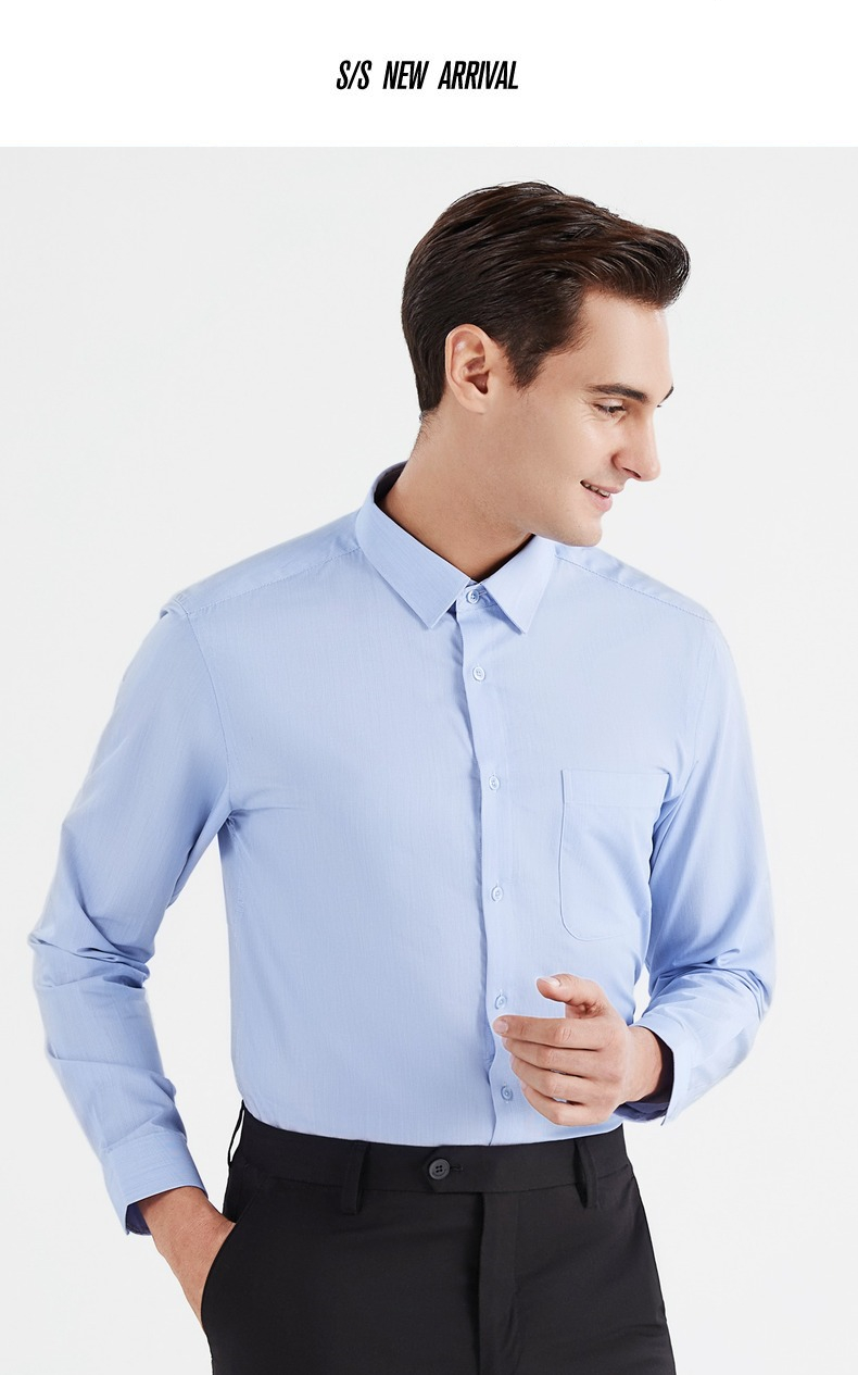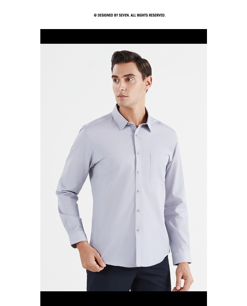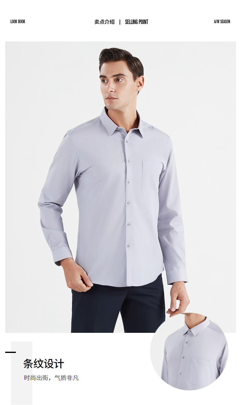 【特价】【含桑蚕丝】柒牌男士衬衫商务休闲春季新款长袖翻领贴袋衬衣122A70540