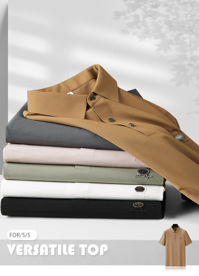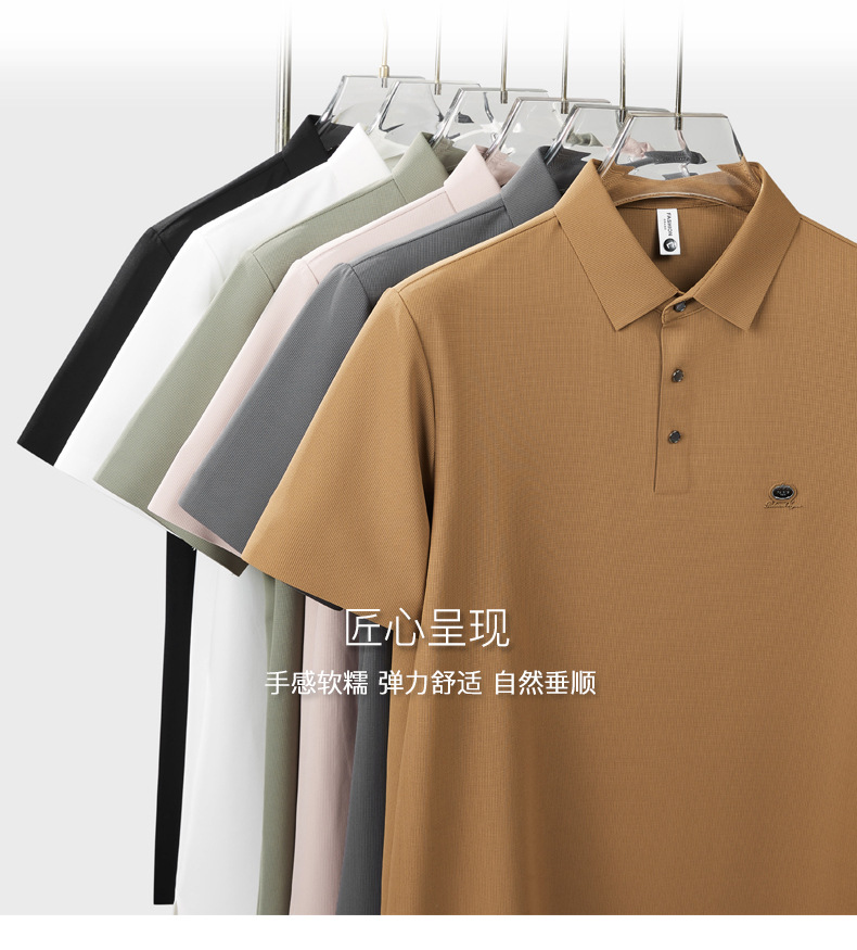 【商务高端短袖POLO衫】男士免烫弹力垂感华夫格T恤 上衣潮流 父亲节