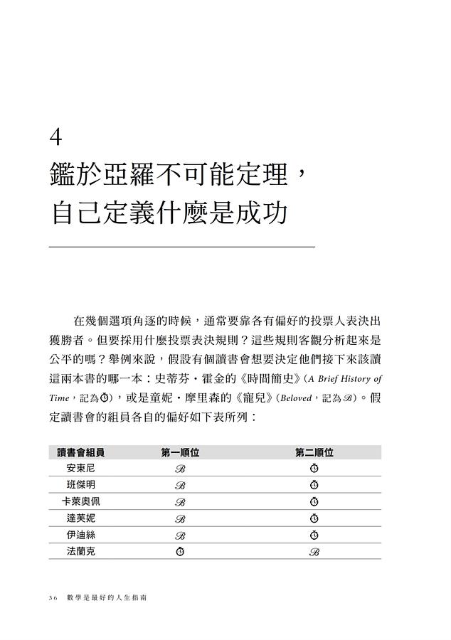 4. 鑑於亞羅不可能定理,自己定義什麼是成功