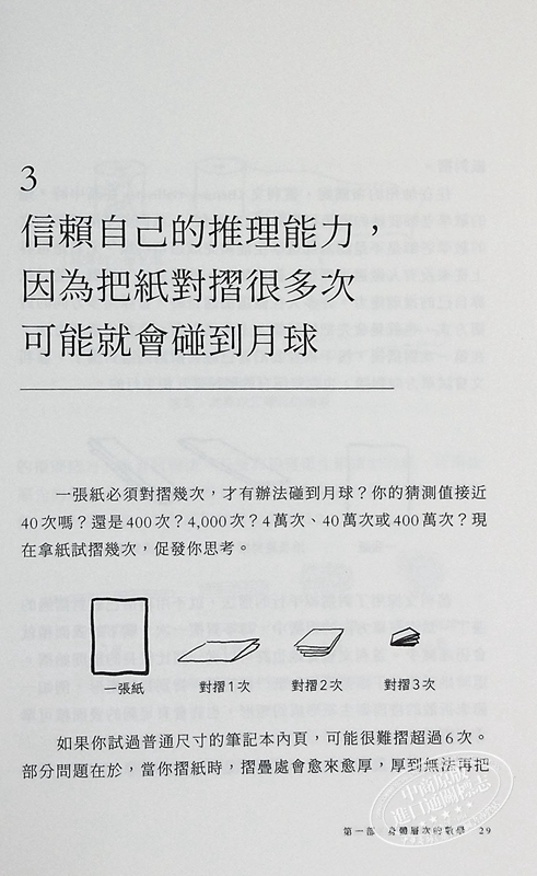 3. 信賴自己的推理能力,因為把紙對摺很多次可能就會碰到月球