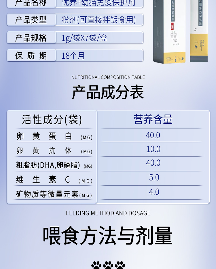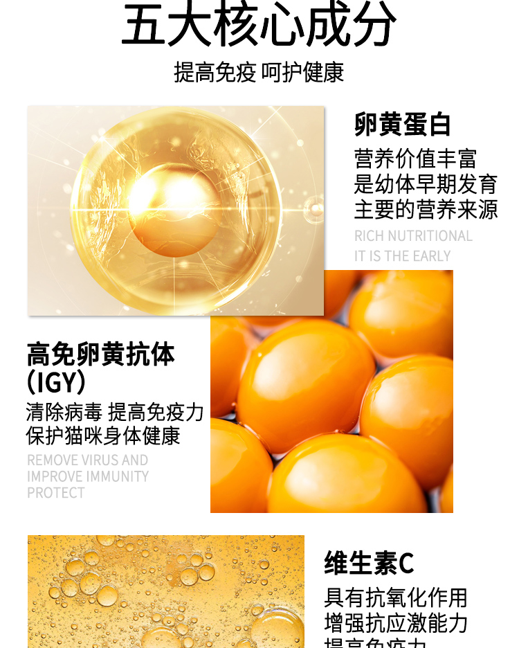 优养宠物猫咪提高幼猫免疫力活性免疫球蛋白IGY卵黄抗体小分子肽