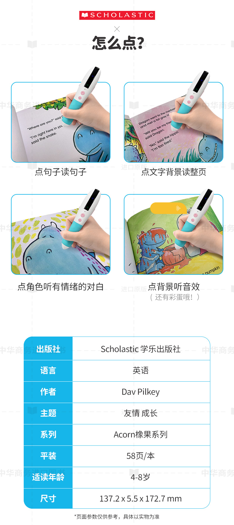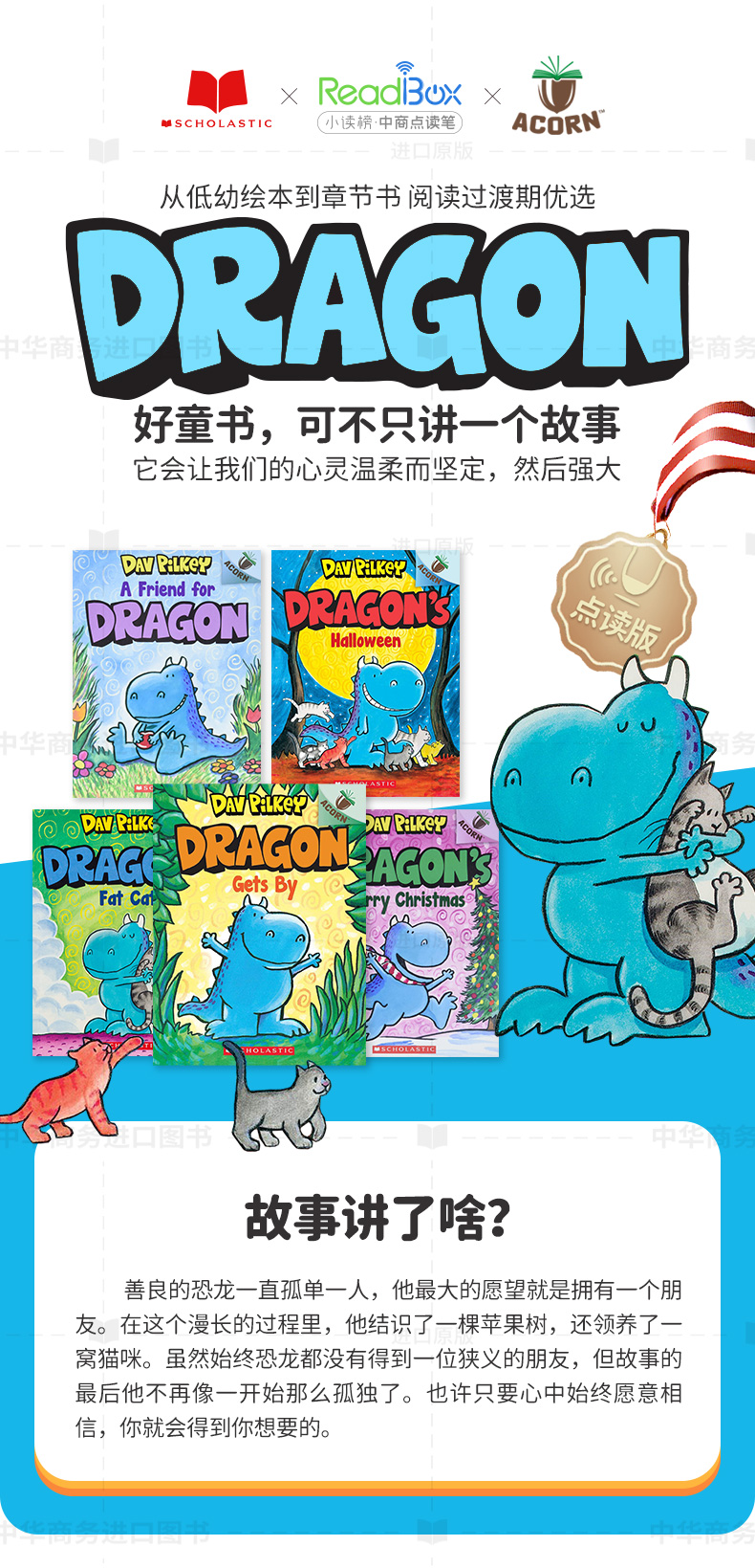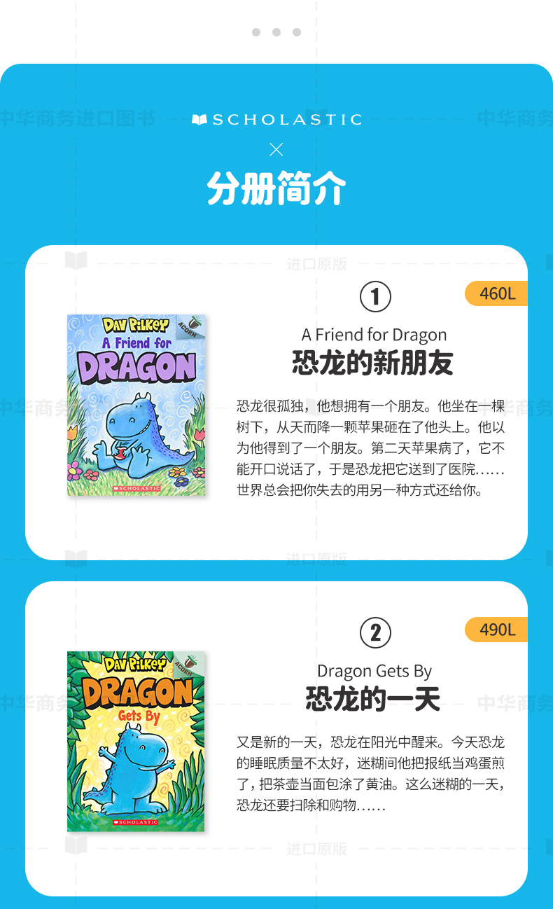 注:本链接于2026年2月14日更新为4册,剔除《Dragon #01: A Friend for Dragon: An Acorn Book 学乐橡树种子系列:恐龙传奇01(点读版)》。详细书籍目录见下。主图仅供参考,具体请以实物为准。