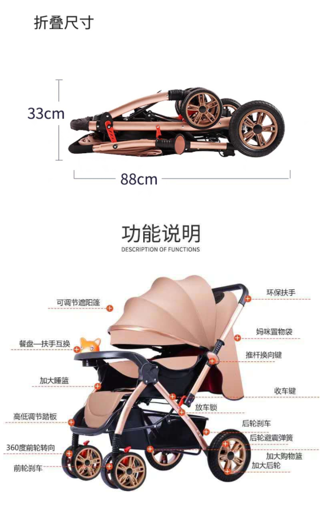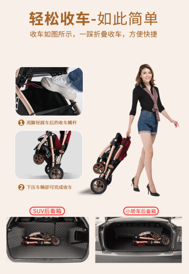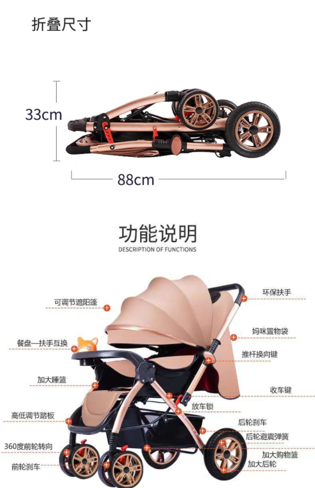 【婴儿车】高景观婴儿车可坐可躺折叠四轮避震婴儿推车双向儿童宝宝手推车