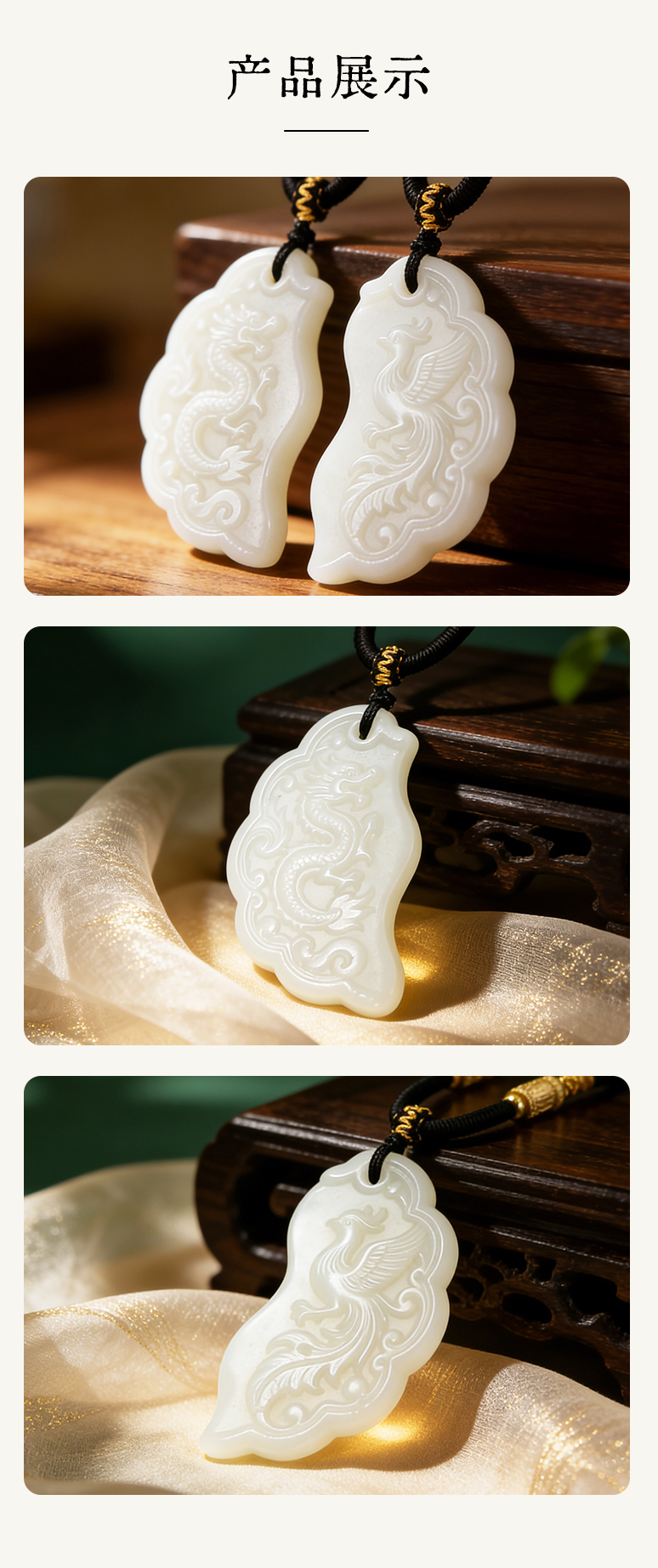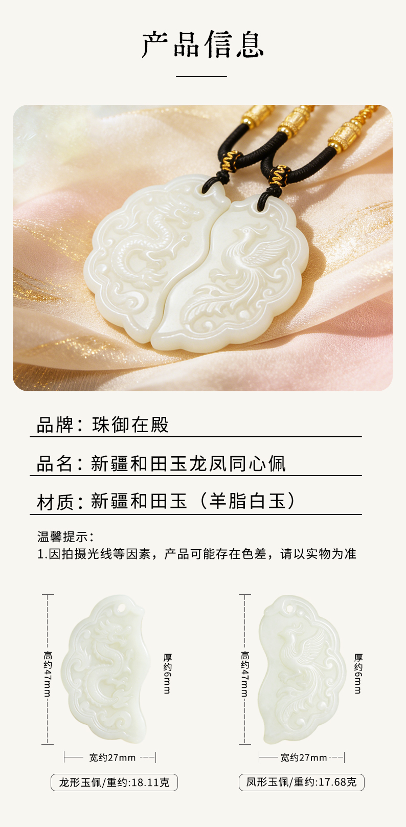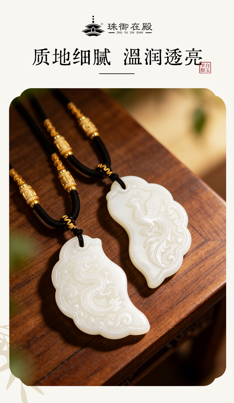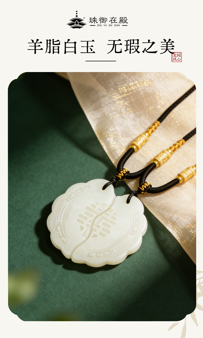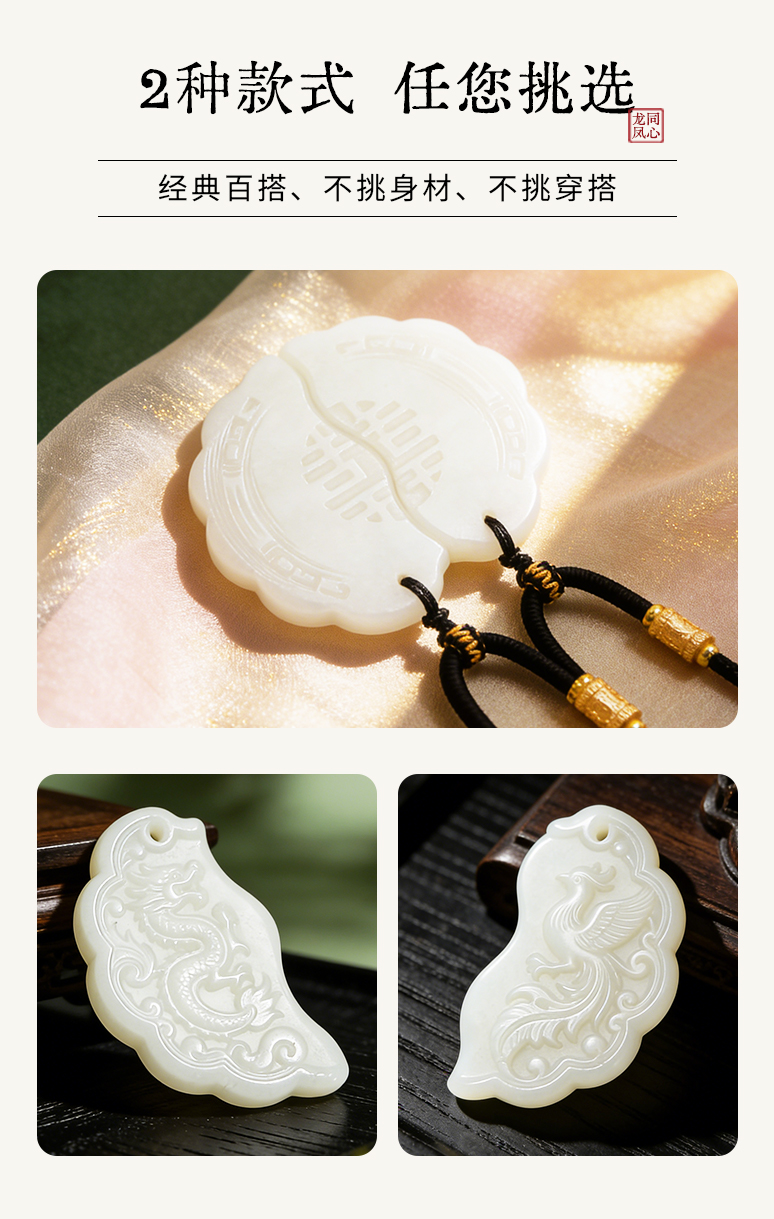 【现做现发,手工打磨,4月9号之后的订单10天发货】珠御在殿·新疆和田玉龙凤同心佩 羊脂白玉 产区溯源 油润光亮 饱满厚实 温润透亮