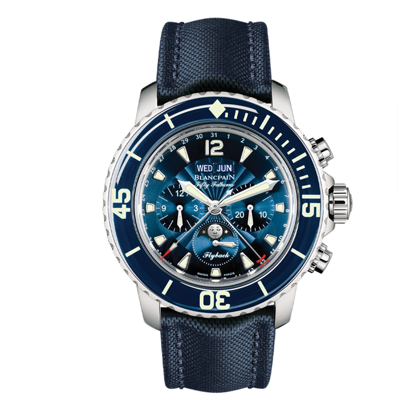 镜面 材质 | 蓝宝石水晶玻璃 | 表盘 | 蓝宝石单向旋转表圈 黑色表圈表盘 锥形夜光时标 日期显示 星期显示 月份显示 月相 计时 飞返/逆跳 |