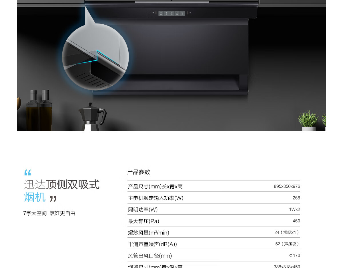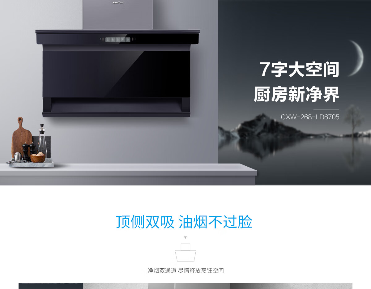 迅达(XUNDA)顶侧双吸7字 吸油烟机 迅达体感智控 挥手调节 20m³爆炒风量 CXW-268-LD6705