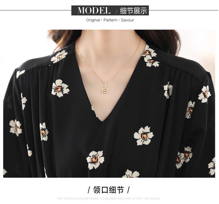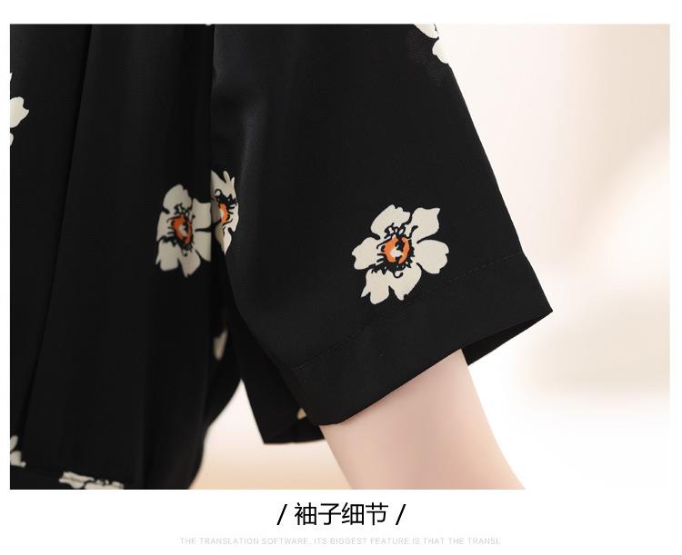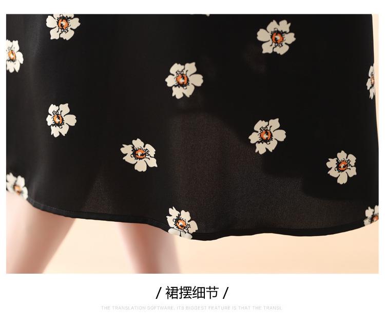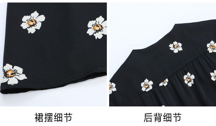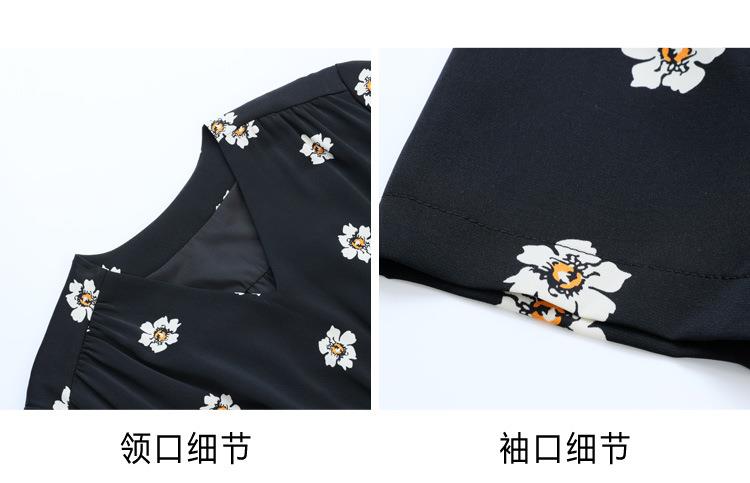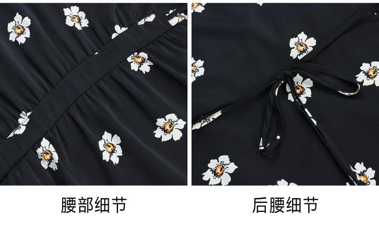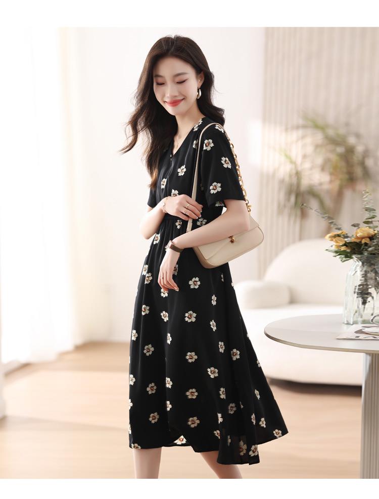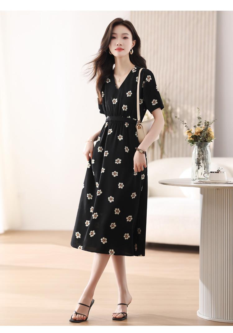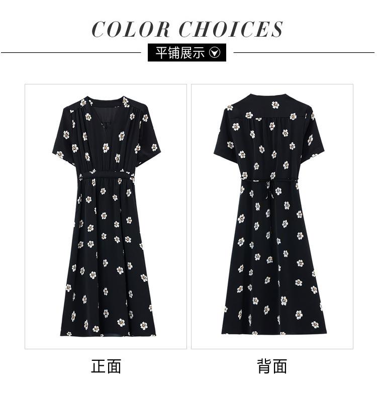 连衣裙女夏2024新款韩版过膝中长款系带收腰V领短袖气质印花裙子