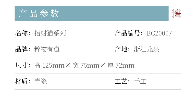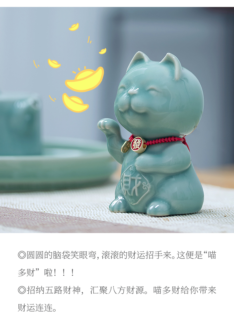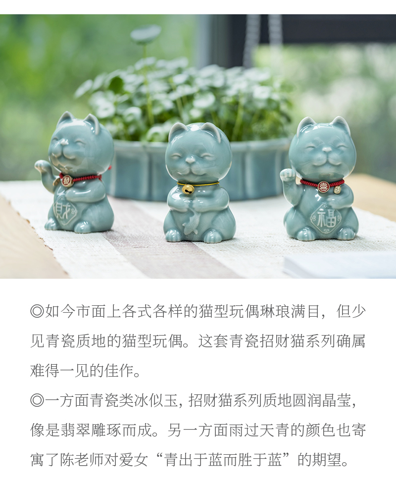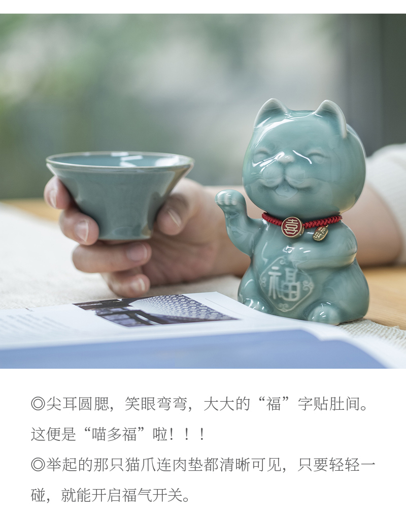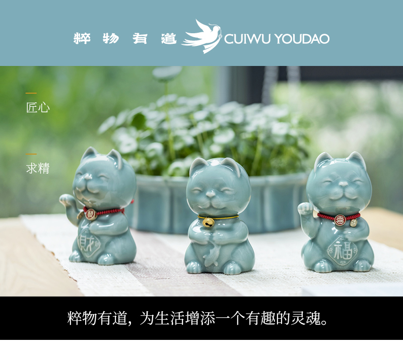 【粹物有道】招财猫小摆件 非遗龙泉青瓷原创摆件 可爱简约创意礼品
