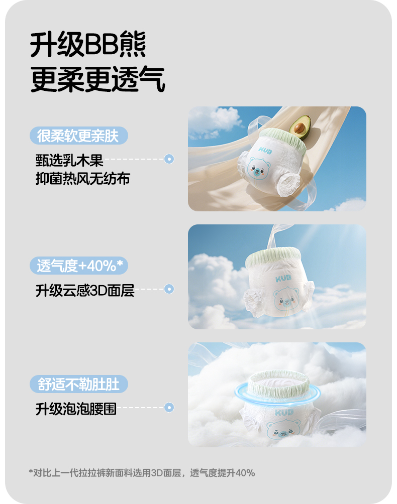 KUB可优比BB熊拉拉裤很柔软尿不湿婴儿宝宝超薄透气干爽非纸尿裤