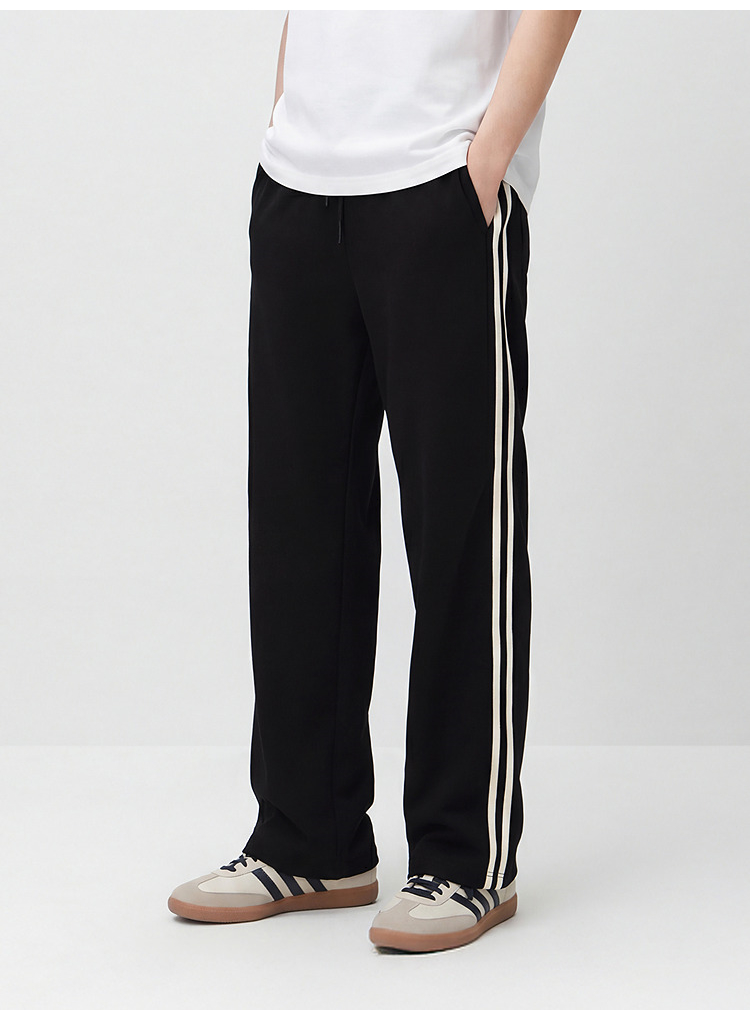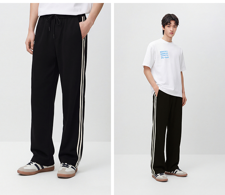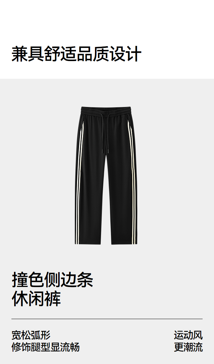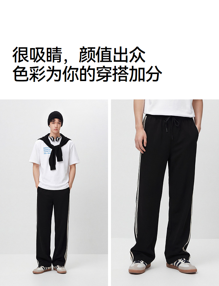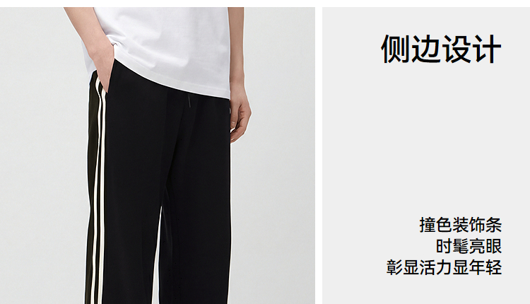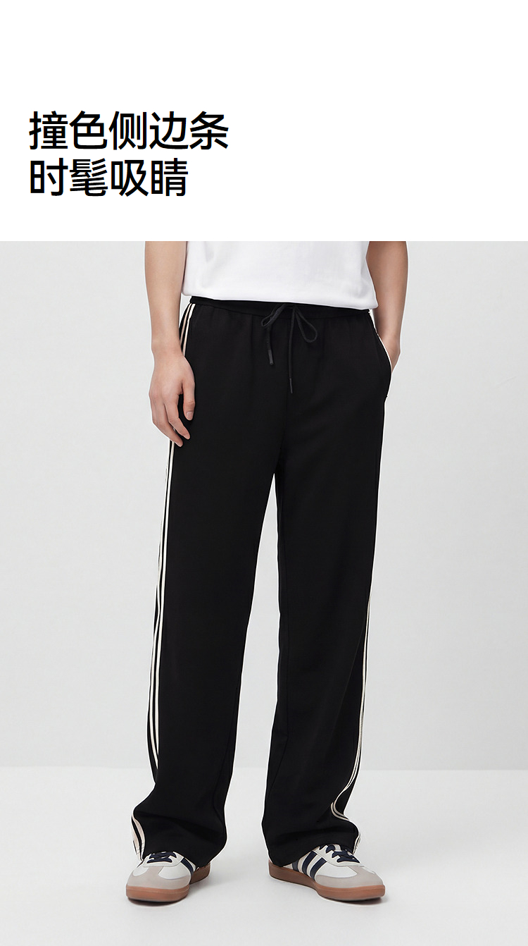 森马休闲裤男夏季复古运动风宽松弧形裤时尚侧边撞色抽绳松紧长裤