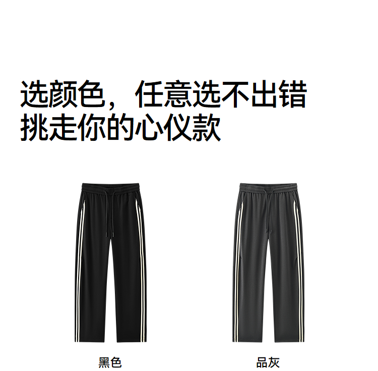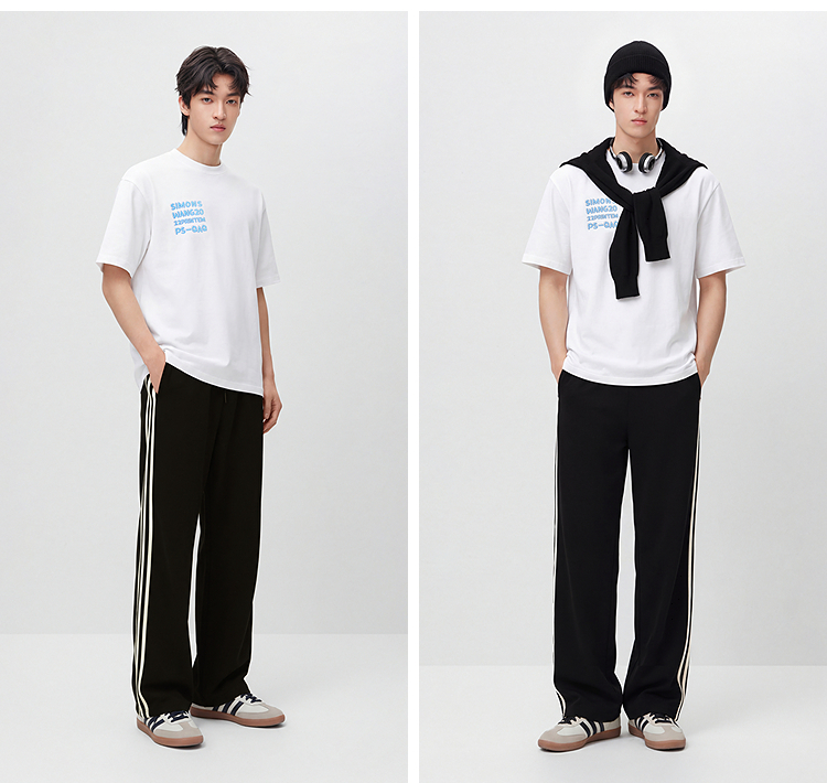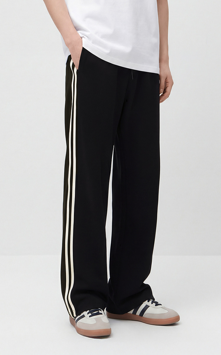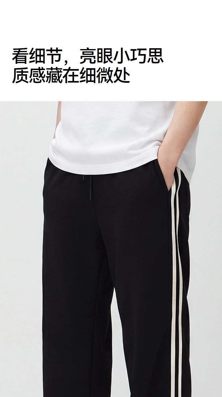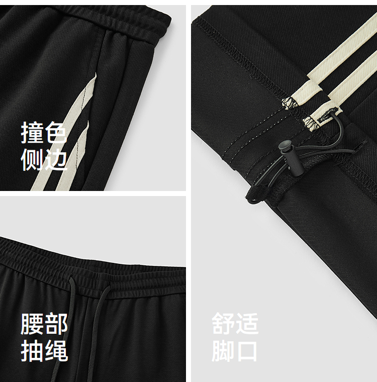 森马休闲裤男夏季复古运动风宽松弧形裤时尚侧边撞色抽绳松紧长裤
