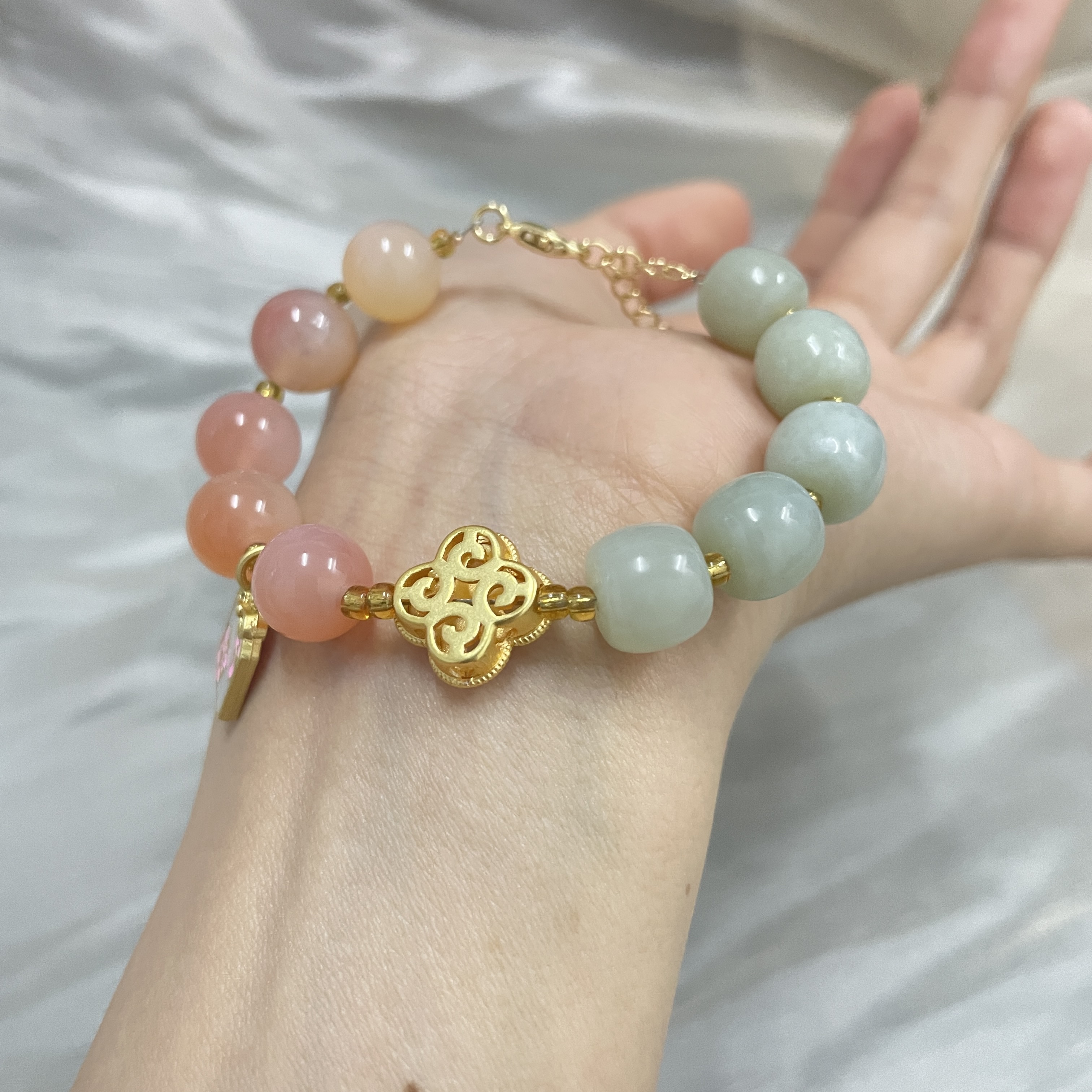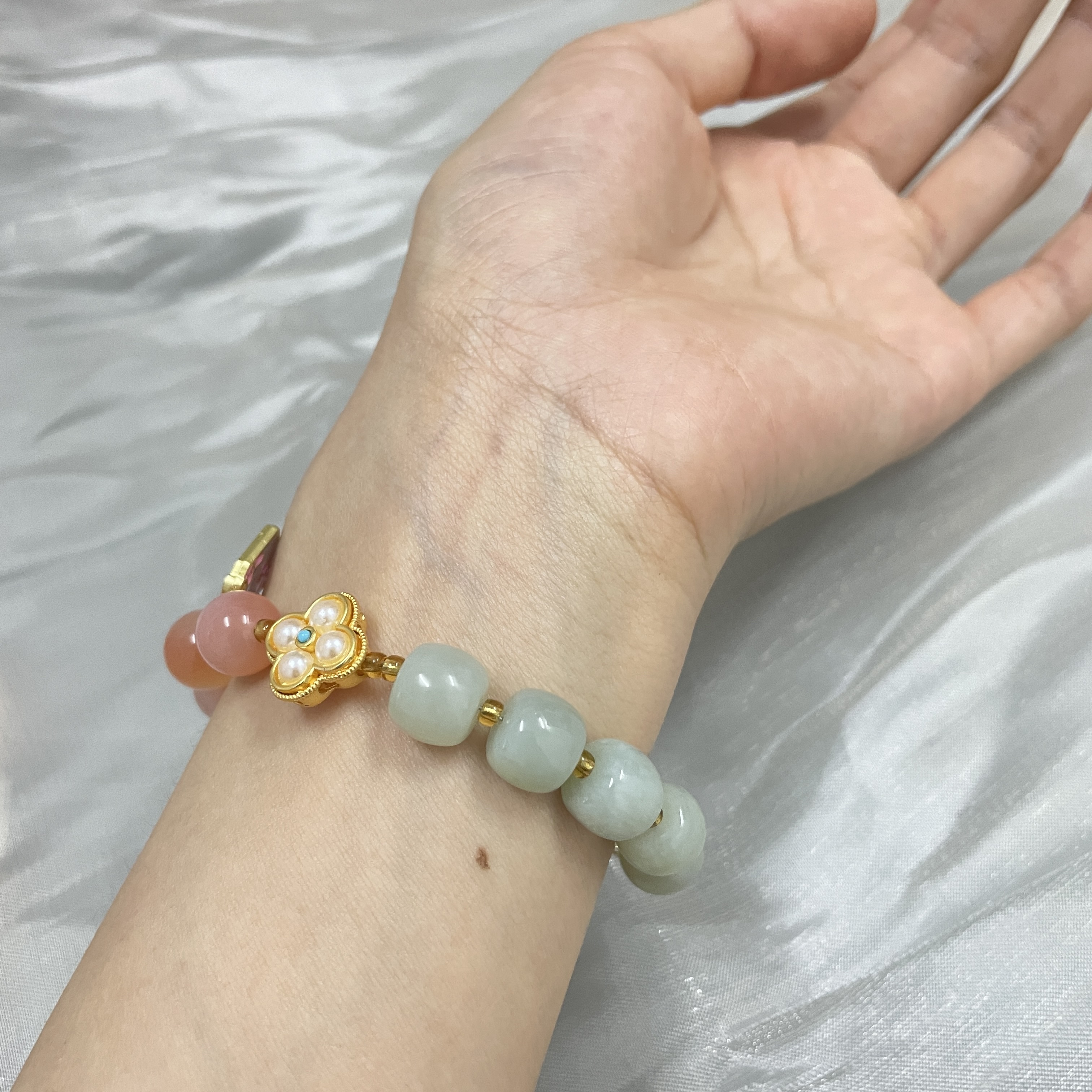 【品名】珀派霖菲和田玉盐源玛瑙手串