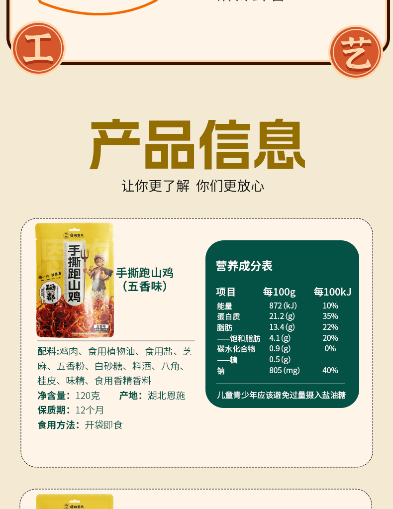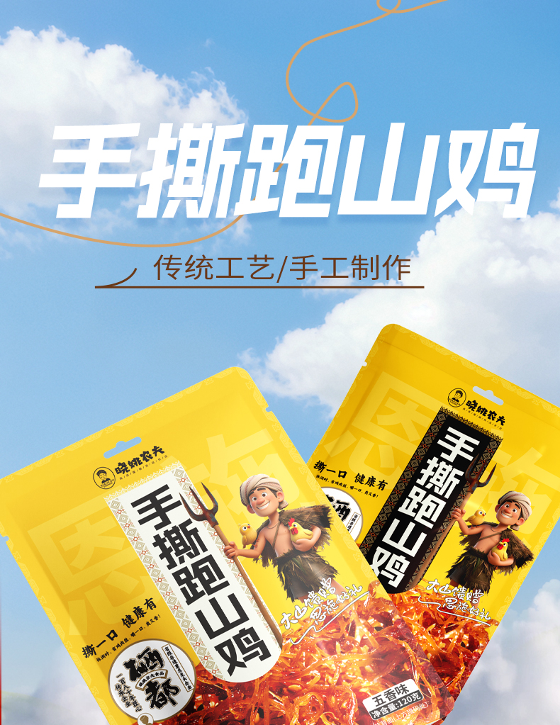 晓姚新品爆款丨手撕跑山鸡120g(五香、香辣)