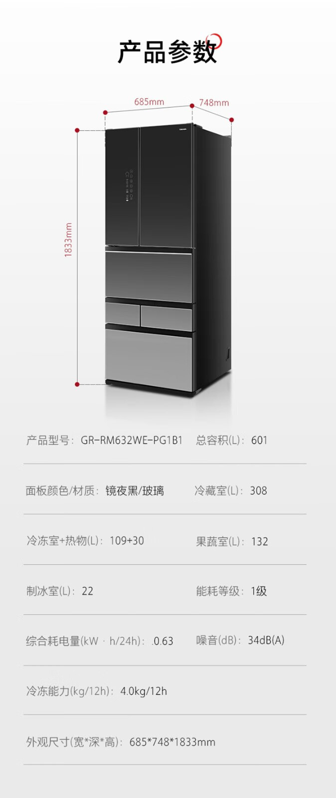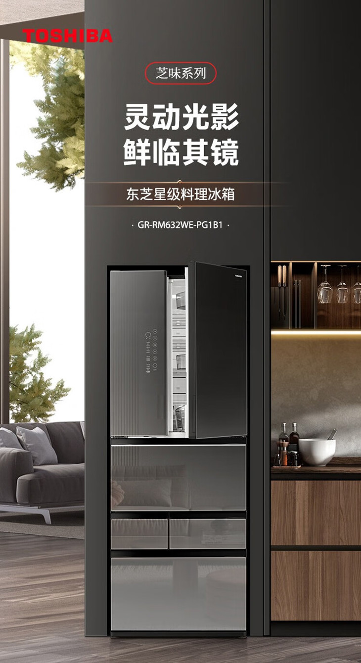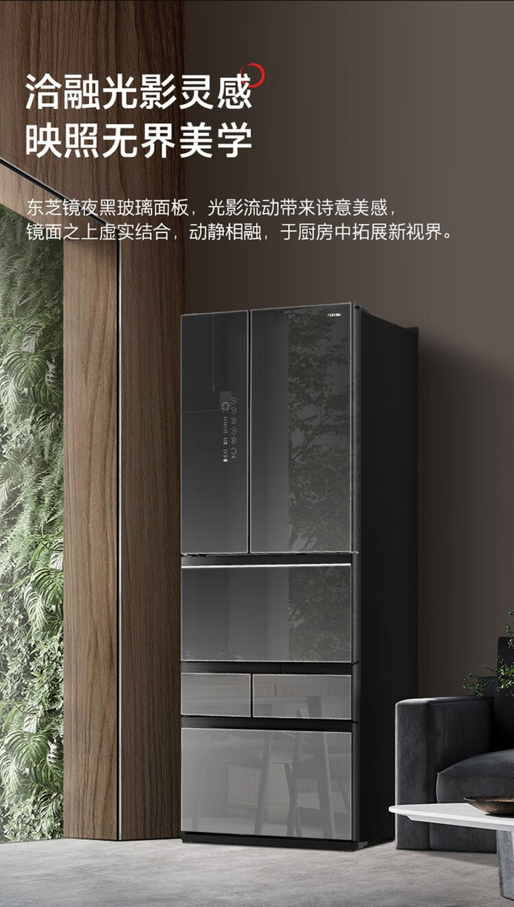 东芝(TOSHIBA)(12974)星级料理601升大容量风冷无霜多门冰箱制冰 家用一级能效 镜面体感触控门 GR-RM632WE-PG1B1