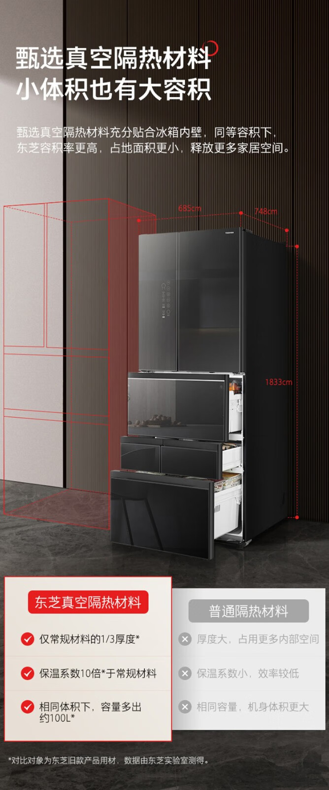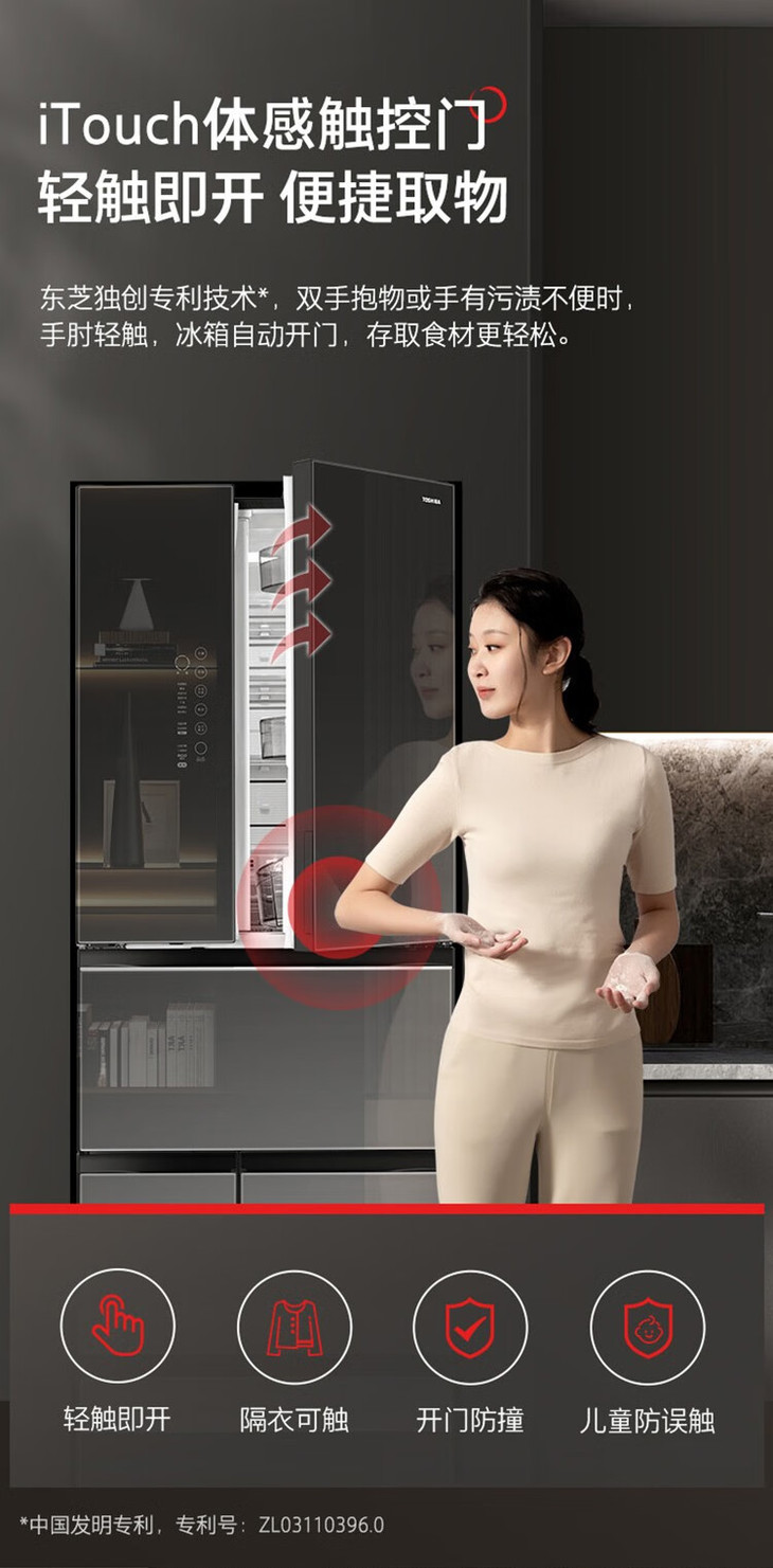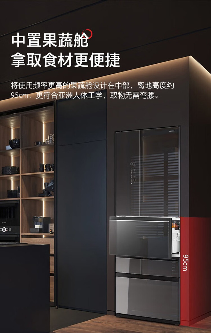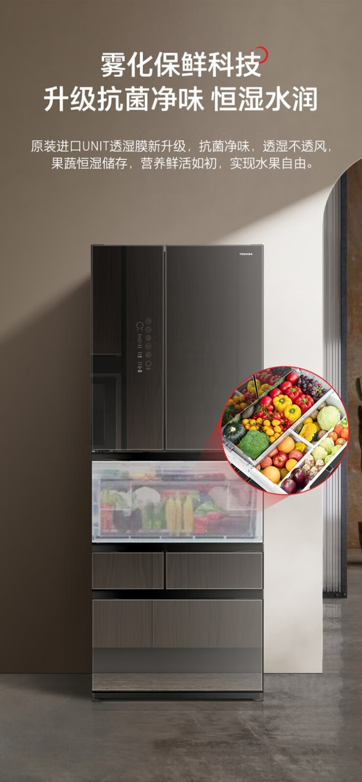 东芝(TOSHIBA)(12974)星级料理601升大容量风冷无霜多门冰箱制冰 家用一级能效 镜面体感触控门 GR-RM632WE-PG1B1