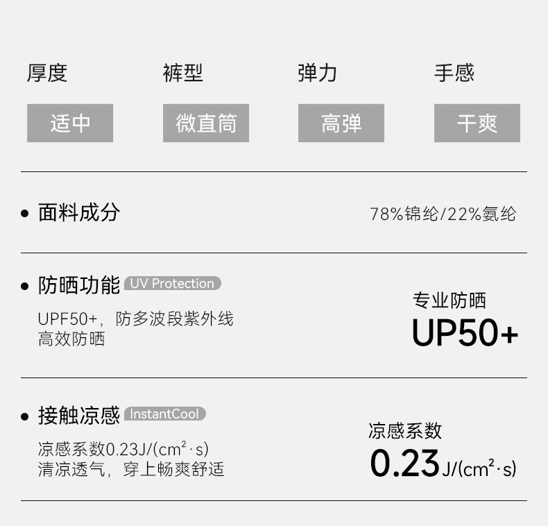 【门店同款】十如仕微直筒高弹春夏新品轻量凉感防晒裤SP17-02