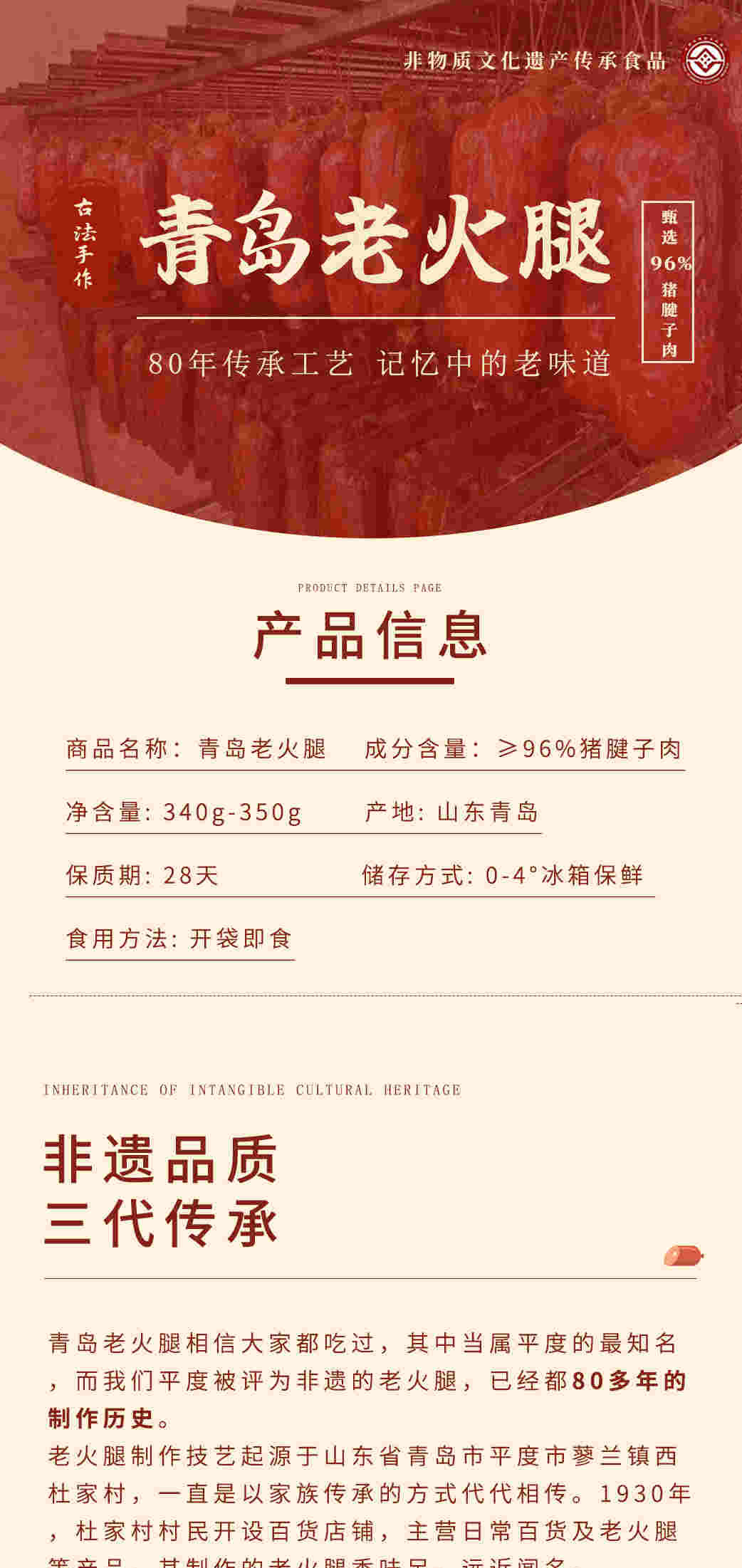 【青岛老火腿】96%猪腱子肉,80年传承工艺,非物质文化遗产传承食品,满满小时候的味道