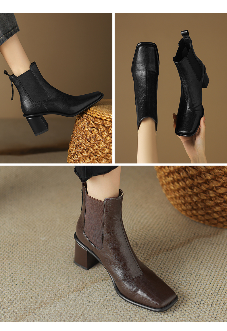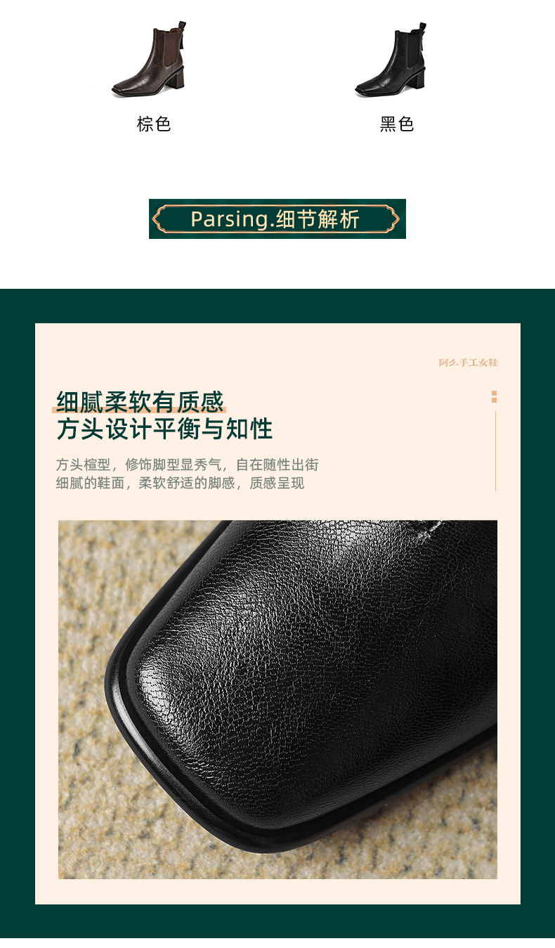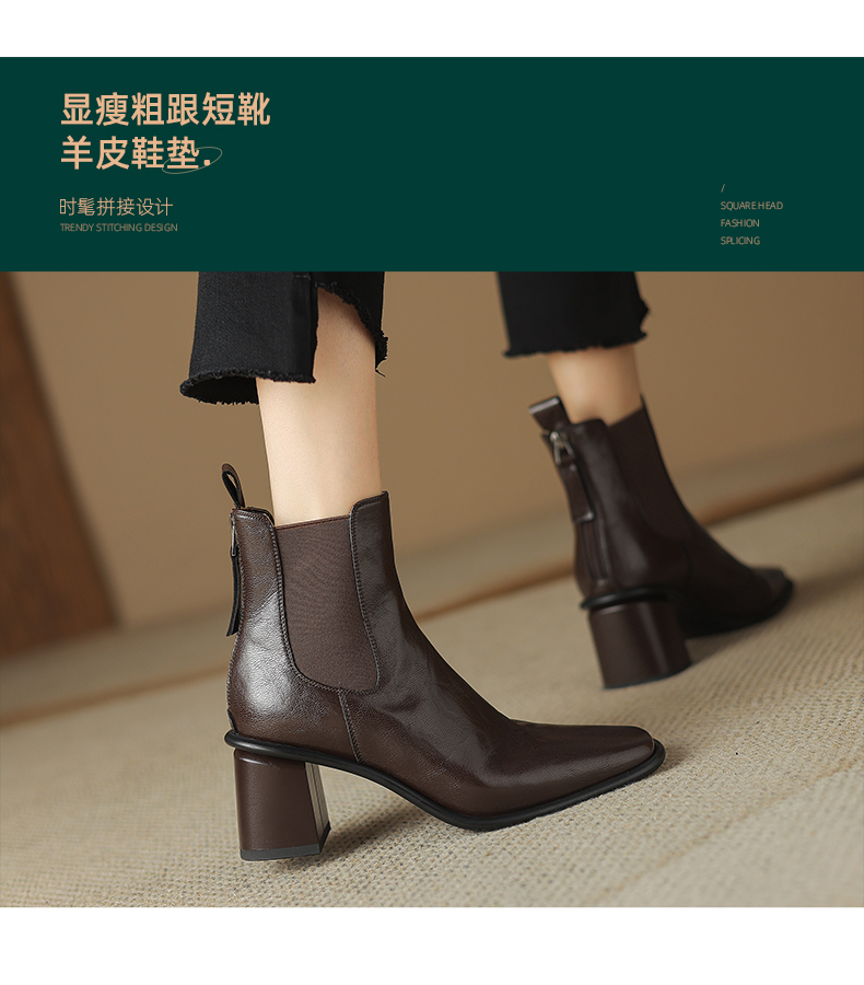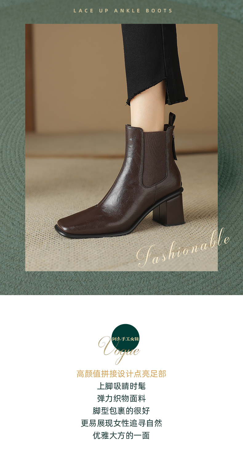 阿么手工女鞋2024冬季新款高跟切尔西靴英伦风拼接雅丹风短靴6CM