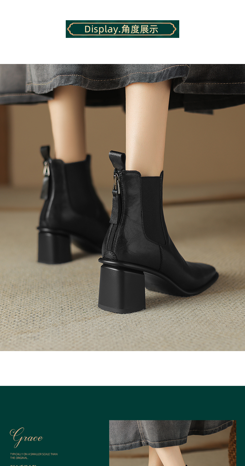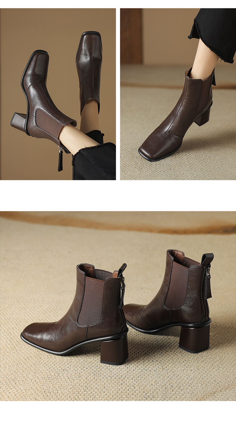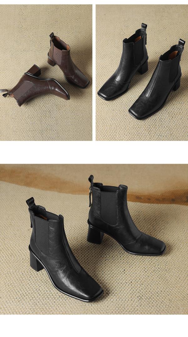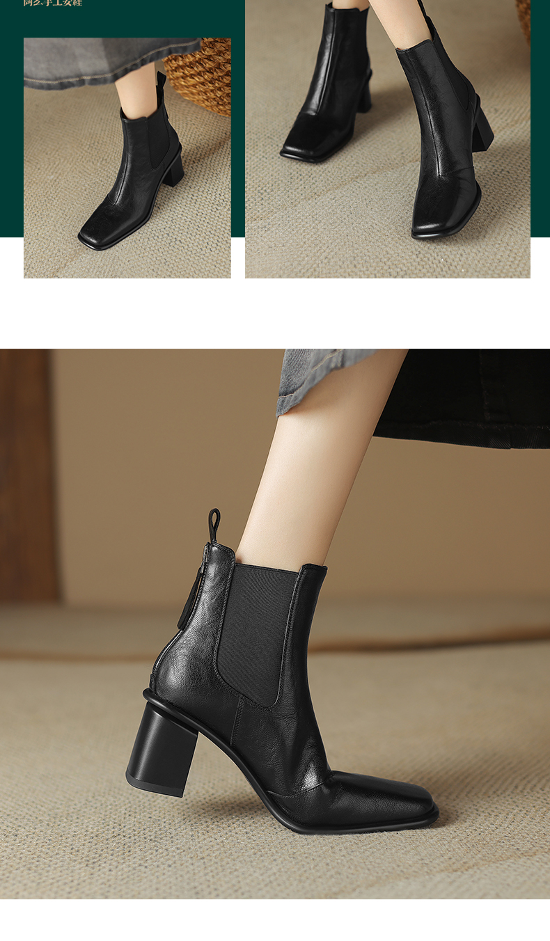 阿么手工女鞋2024冬季新款高跟切尔西靴英伦风拼接雅丹风短靴6CM