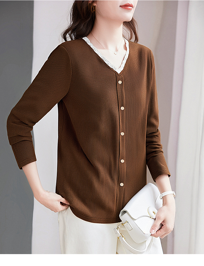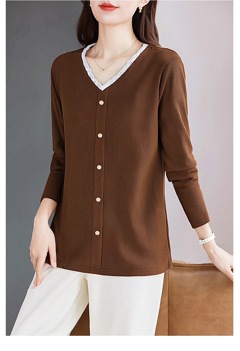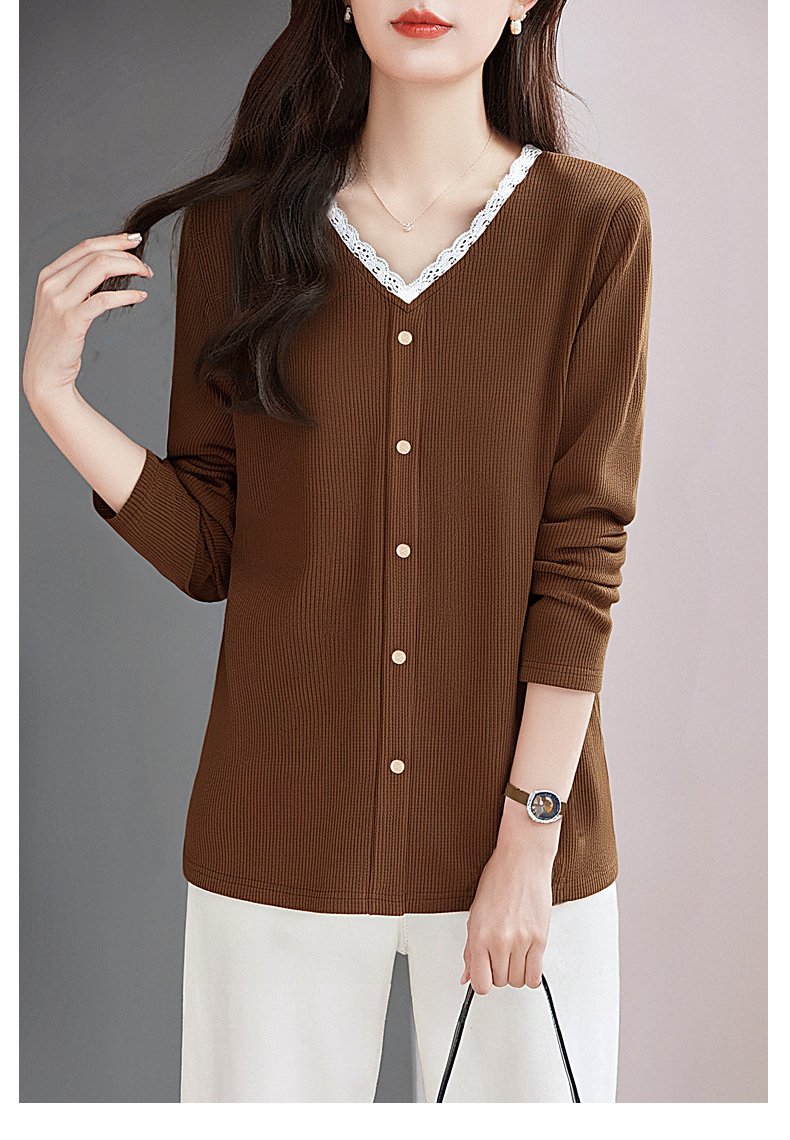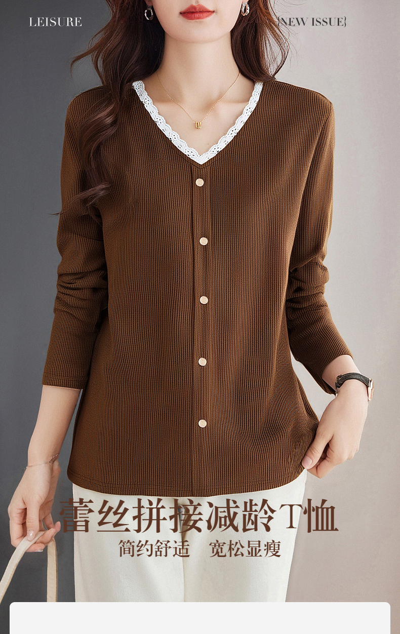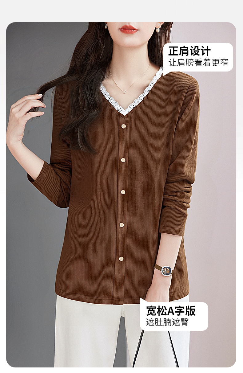 针织打底衫女可外穿遮肚显瘦v领上衣2026新款秋装大码薄款长袖T恤