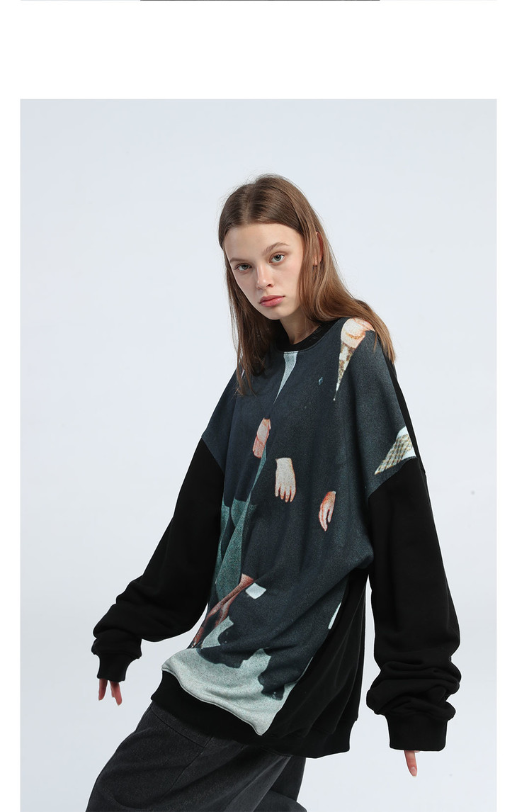 B98926413抽绳拼接套头帽衫卫衣