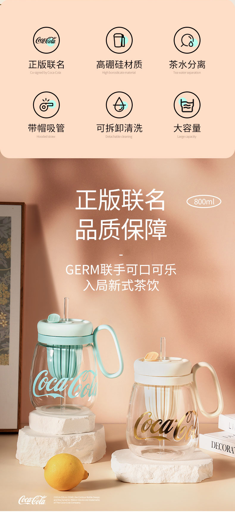 格沵(GERM)可口可乐联名系列 花茶办公杯800ml