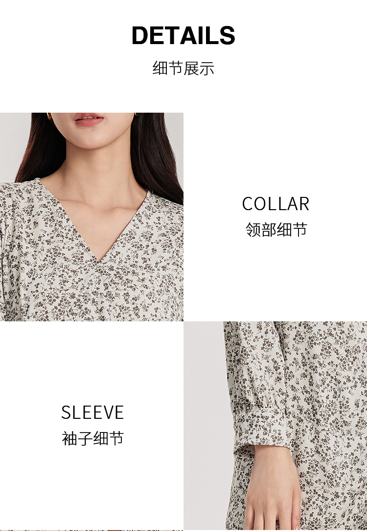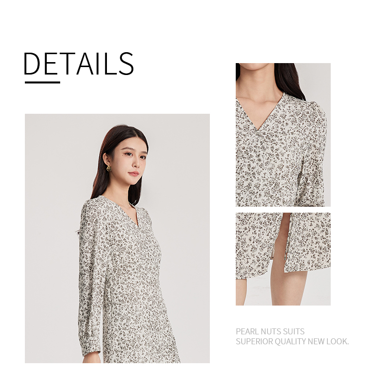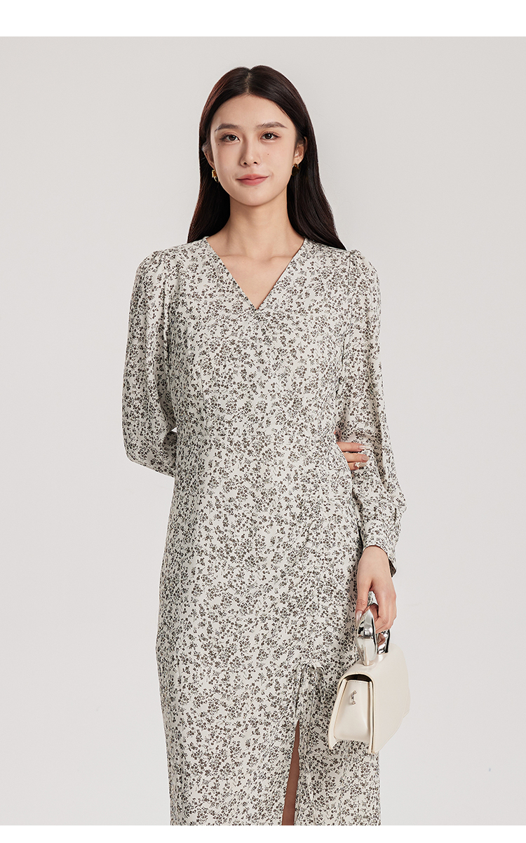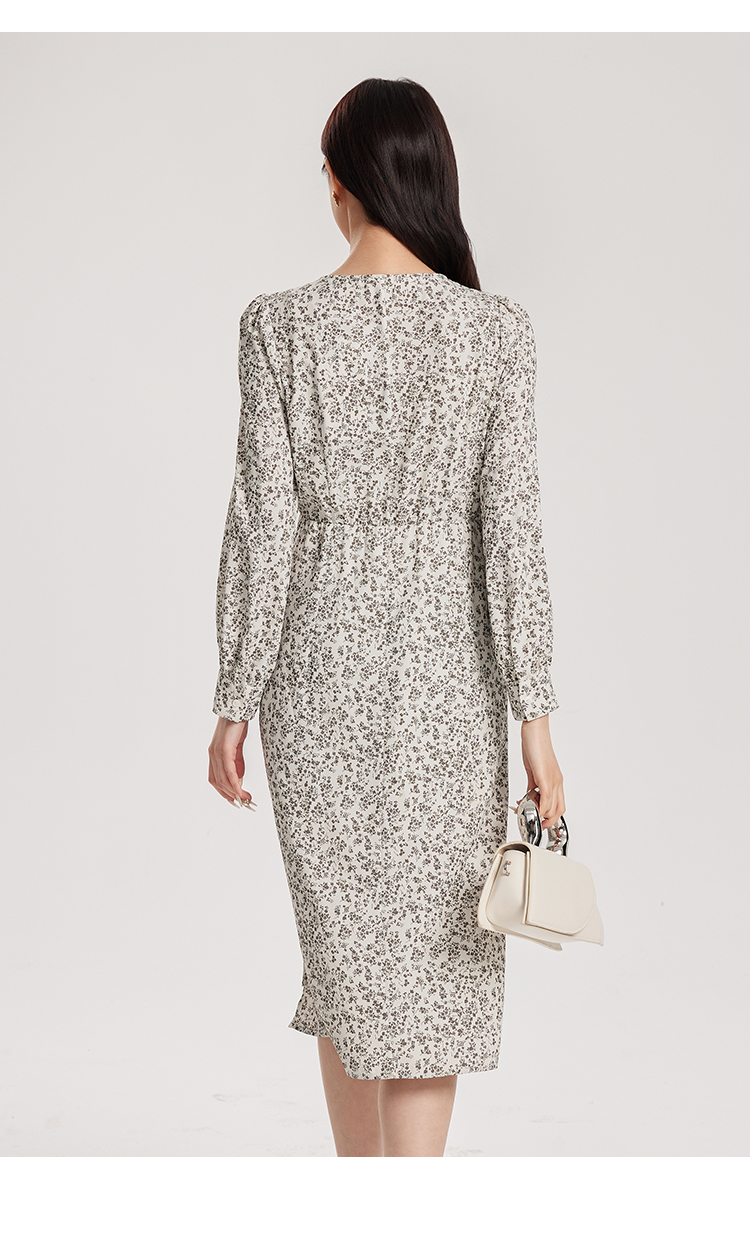 NUTS商场同款春秋款时尚气质百搭通勤V领长袖连衣裙女4341007A1