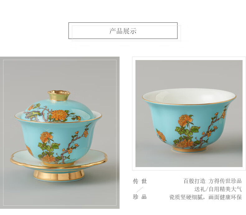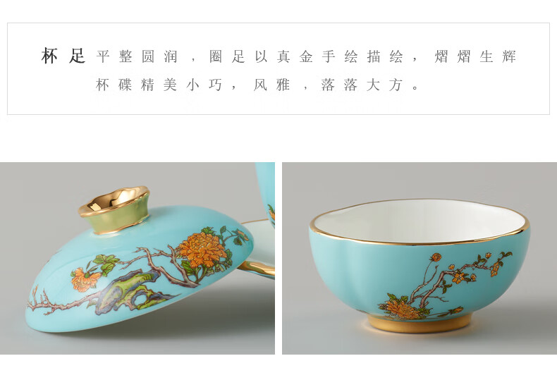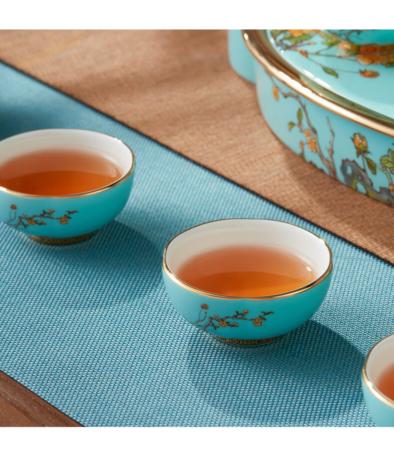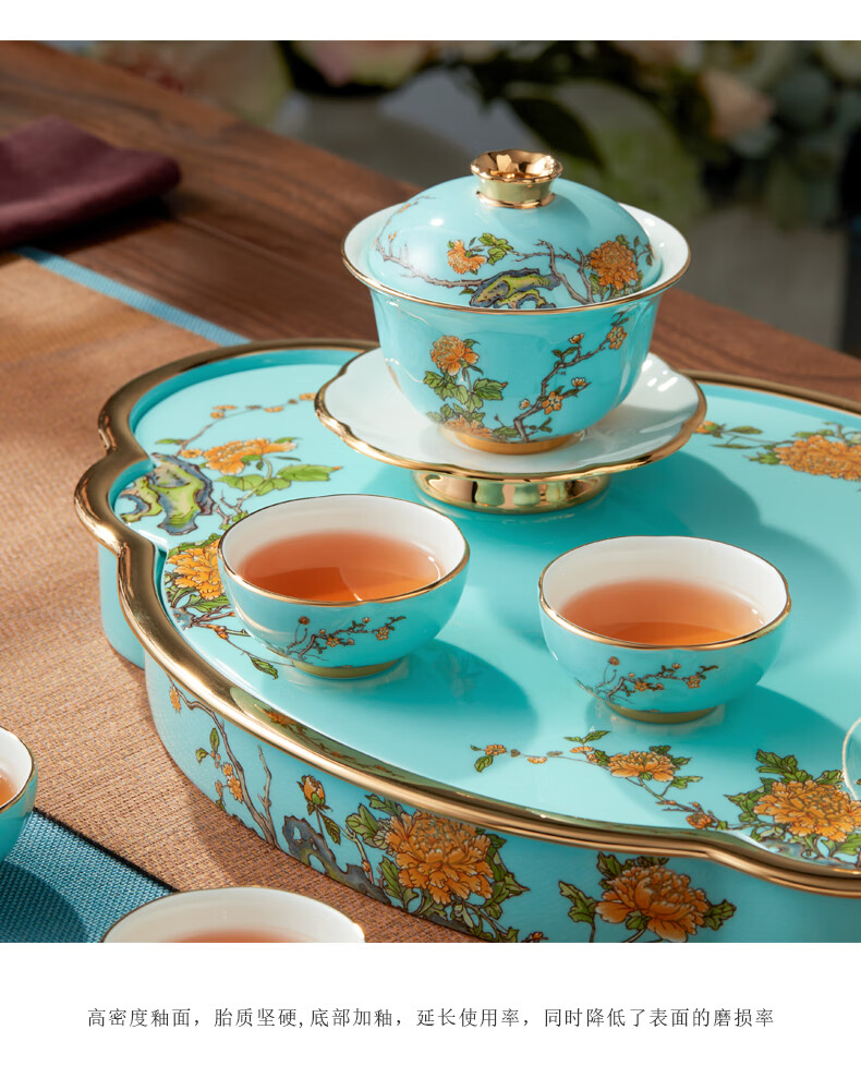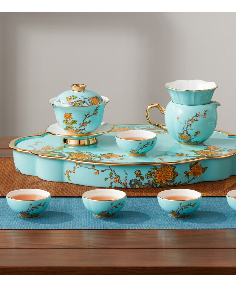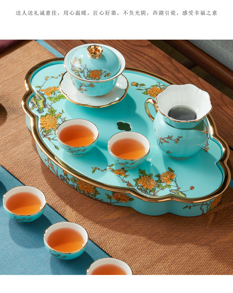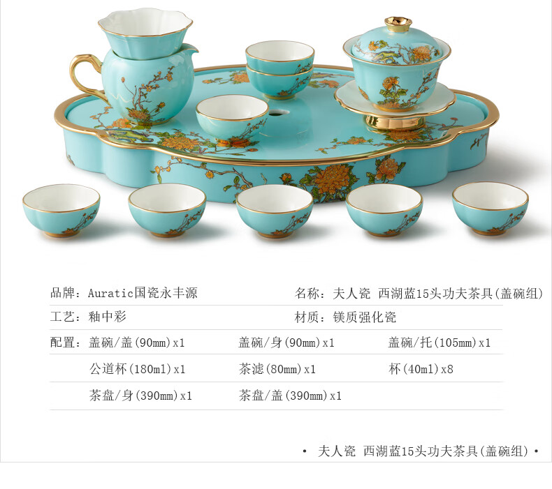 【国瓷·永丰源】夫人瓷西湖蓝陶瓷茶具套装15头功夫茶具