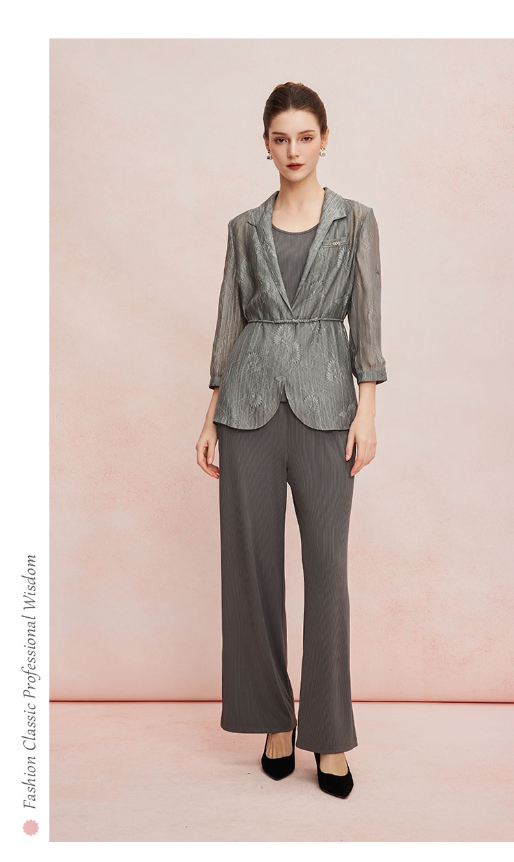 QF116斯尔丽25新款时尚气质三件套休闲宽松版外套内针织舒适套装