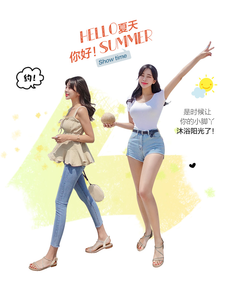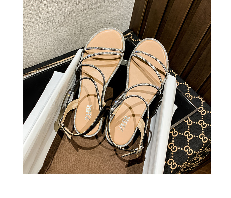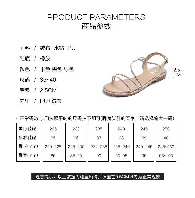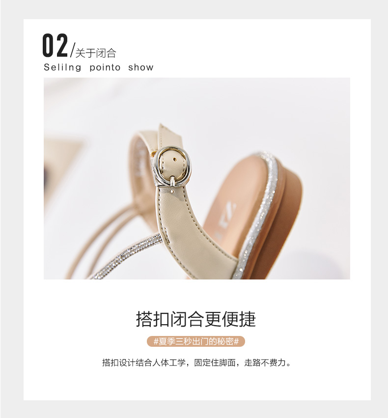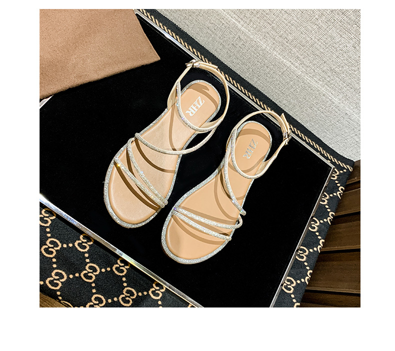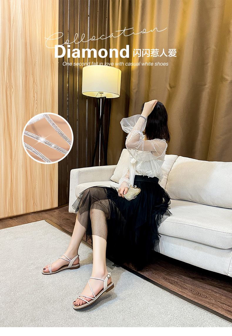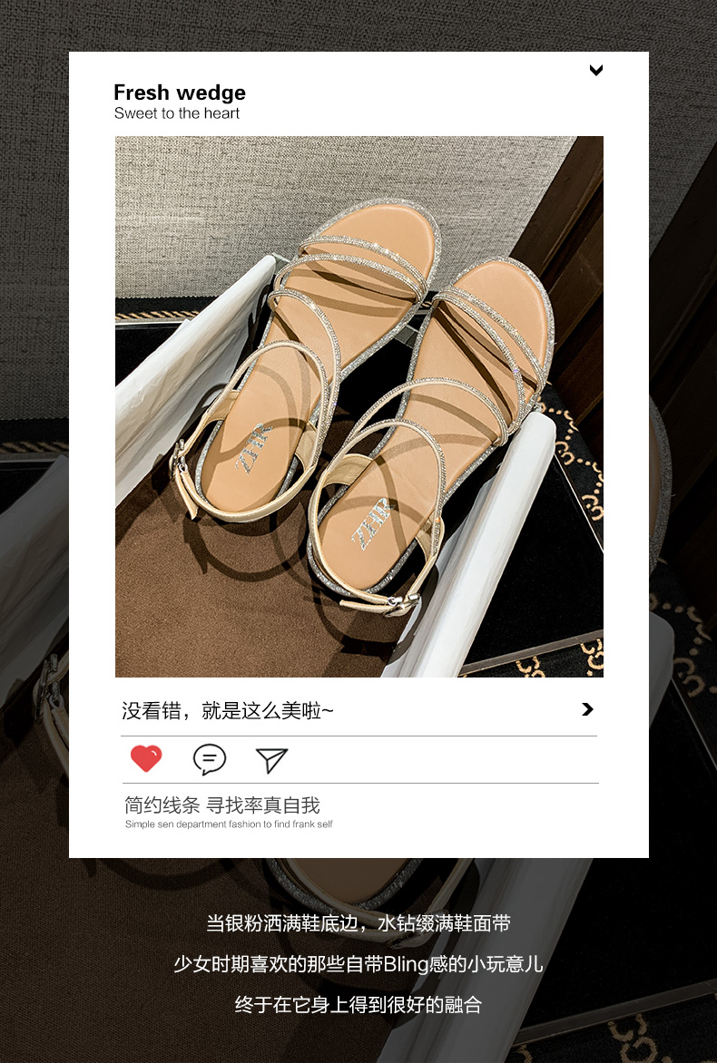 ZHR平底凉鞋女2022夏季新款ins潮时尚水钻一字带休闲软底罗马凉鞋 商品图2