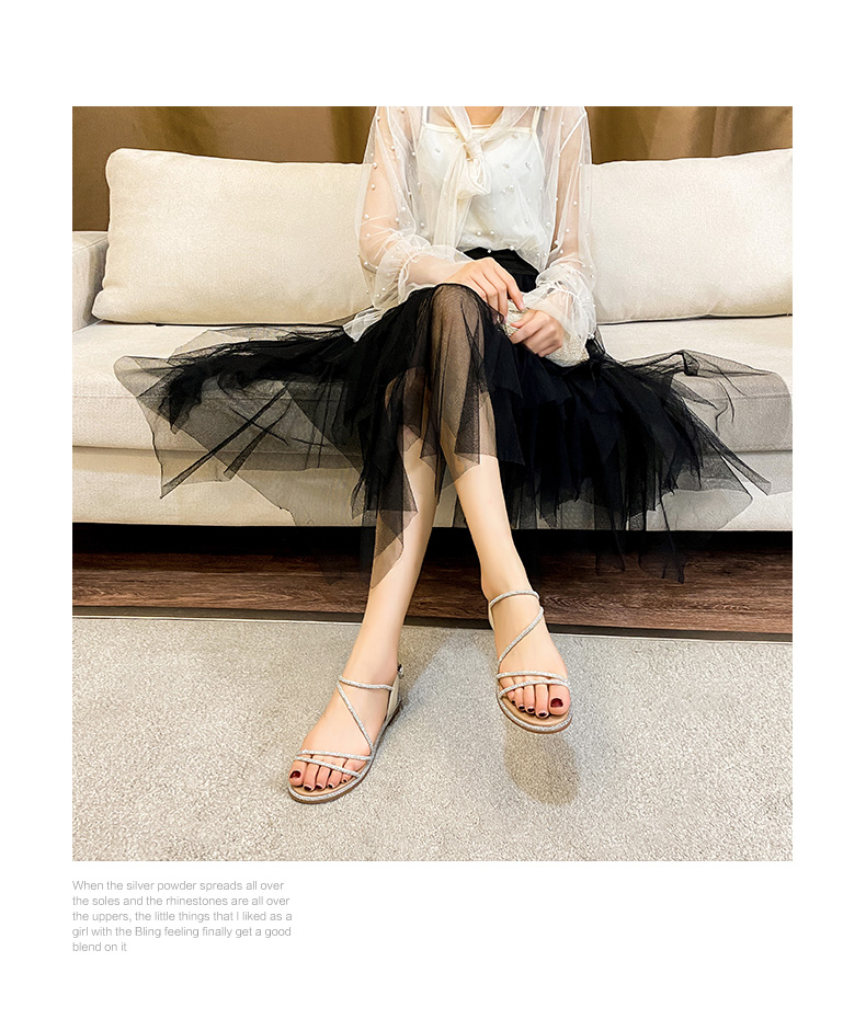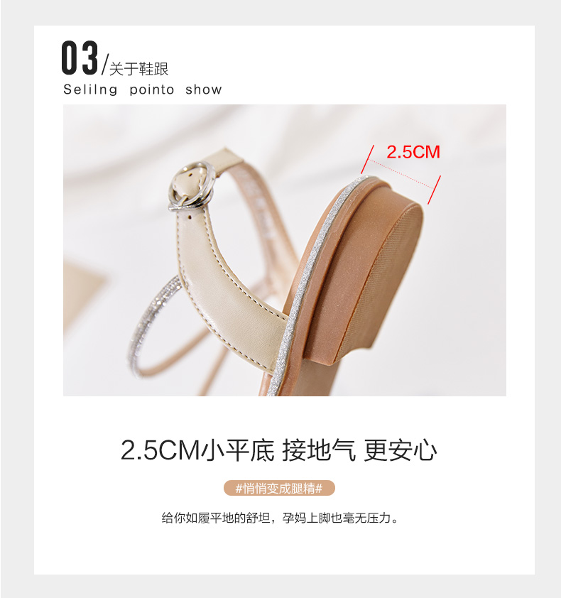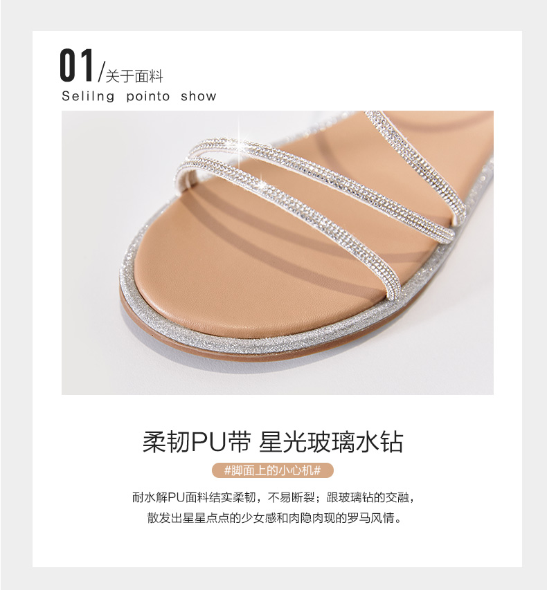 ZHR平底凉鞋女2022夏季新款ins潮时尚水钻一字带休闲软底罗马凉鞋 商品图4