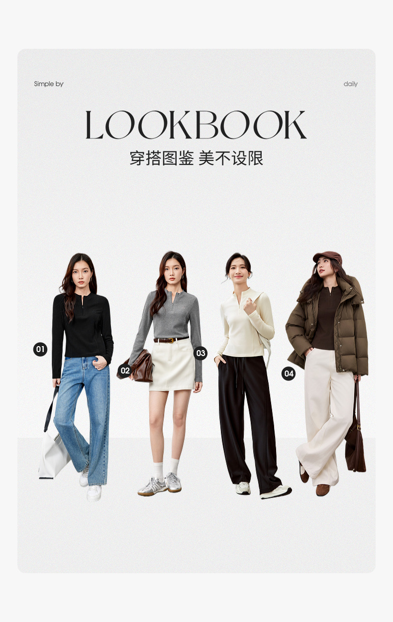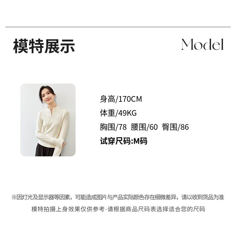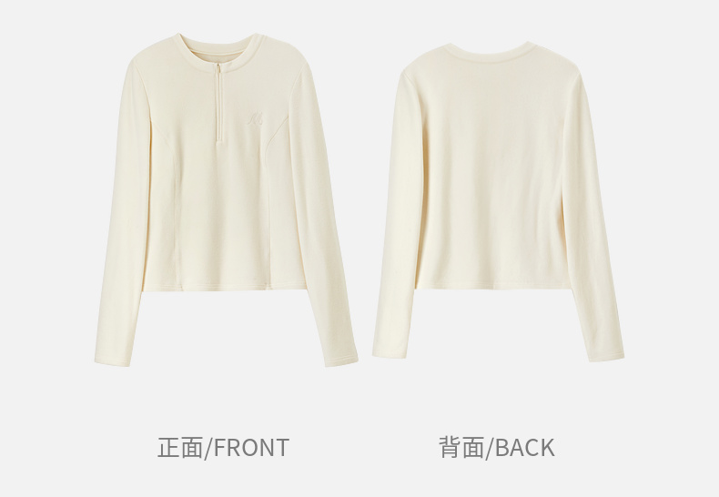 【内购】气质通勤定制半开拉链立领刺绣正肩修身长袖保暖针织内搭打底衫-143T56422 商品图4