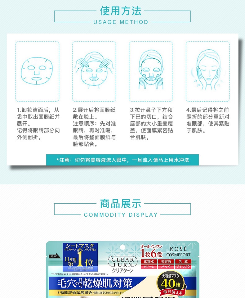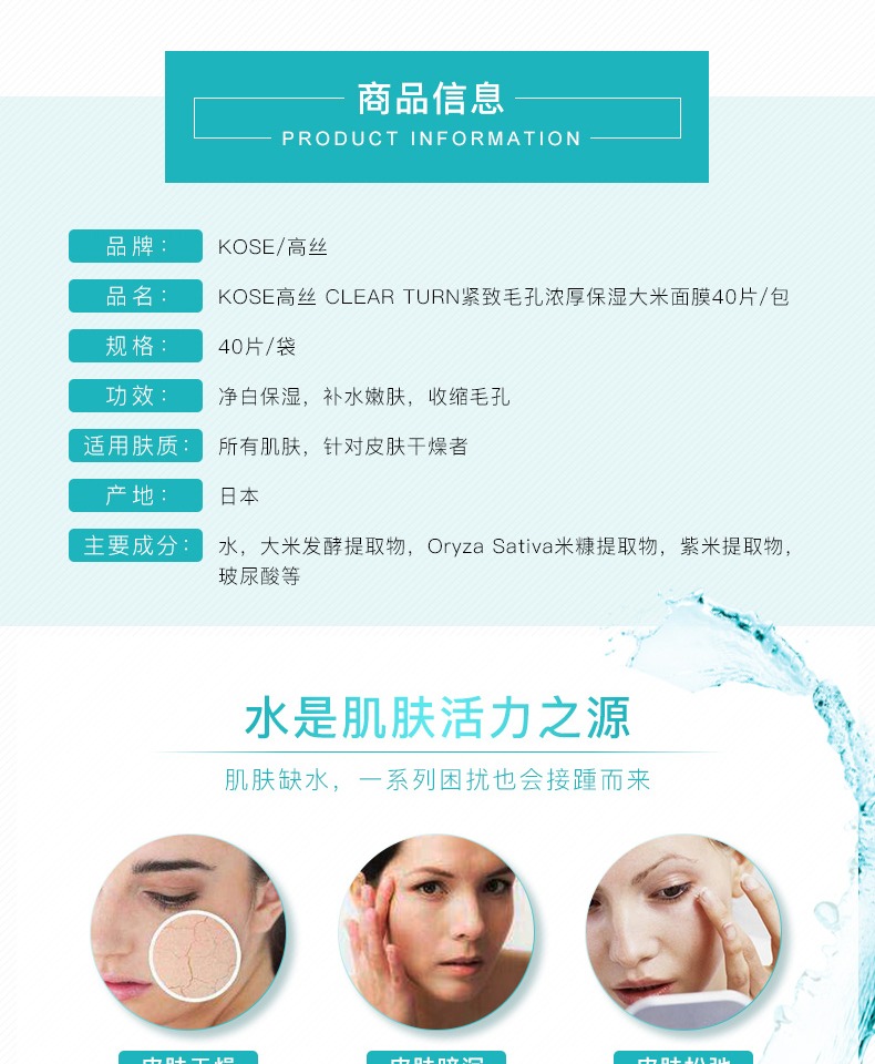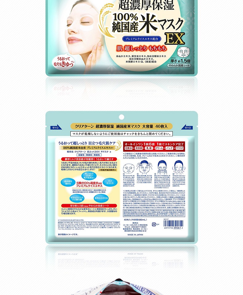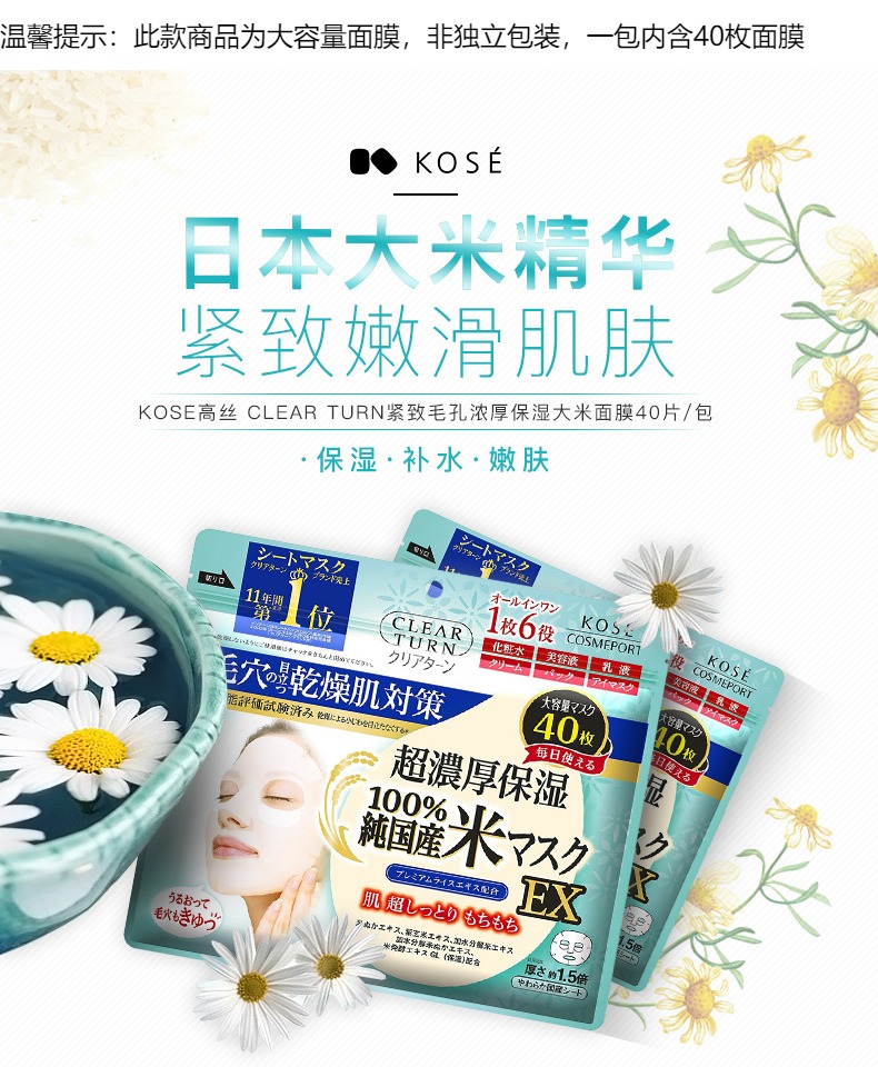 【保税仓】KOSE/高丝婴儿肌超浓厚大米精华保湿面膜40片/包