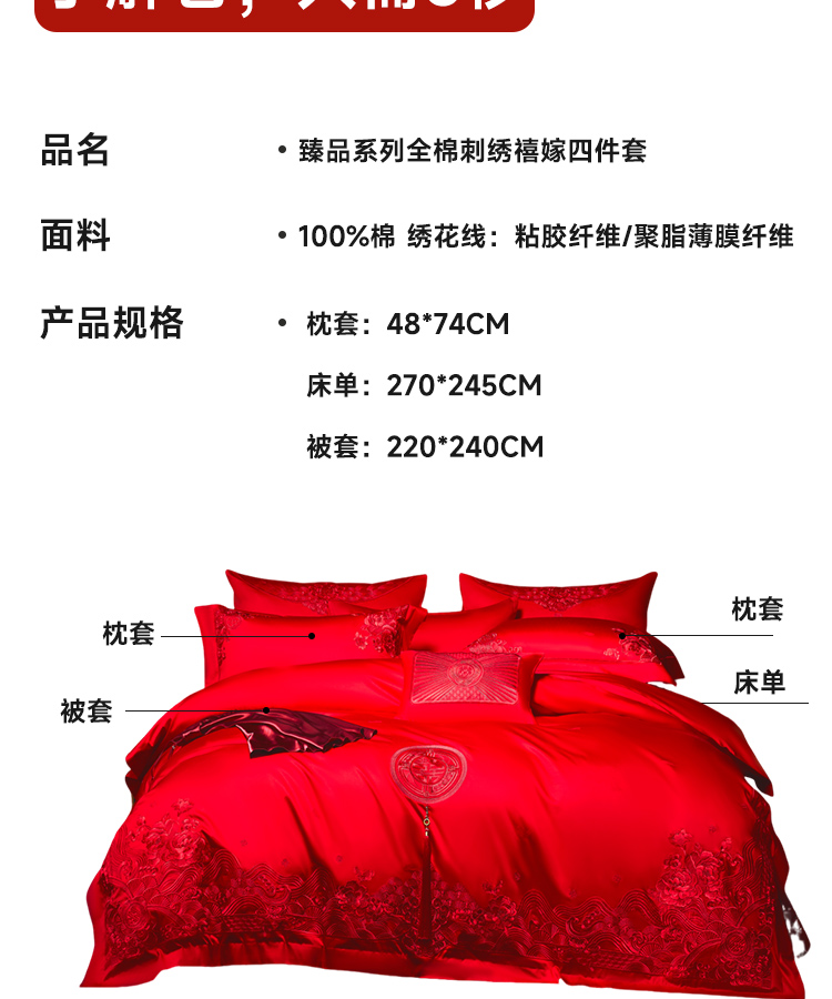 臻品系列全棉刺绣禧嫁四件套(华庭至爱)