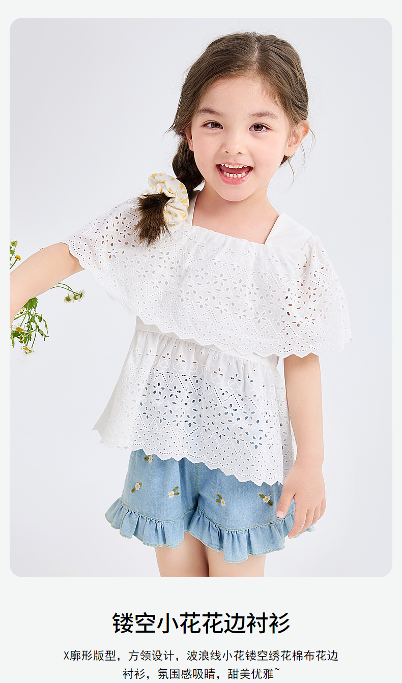 笛莎Deesha 童装小童衬衫2024夏季新款甜美短袖衬衫