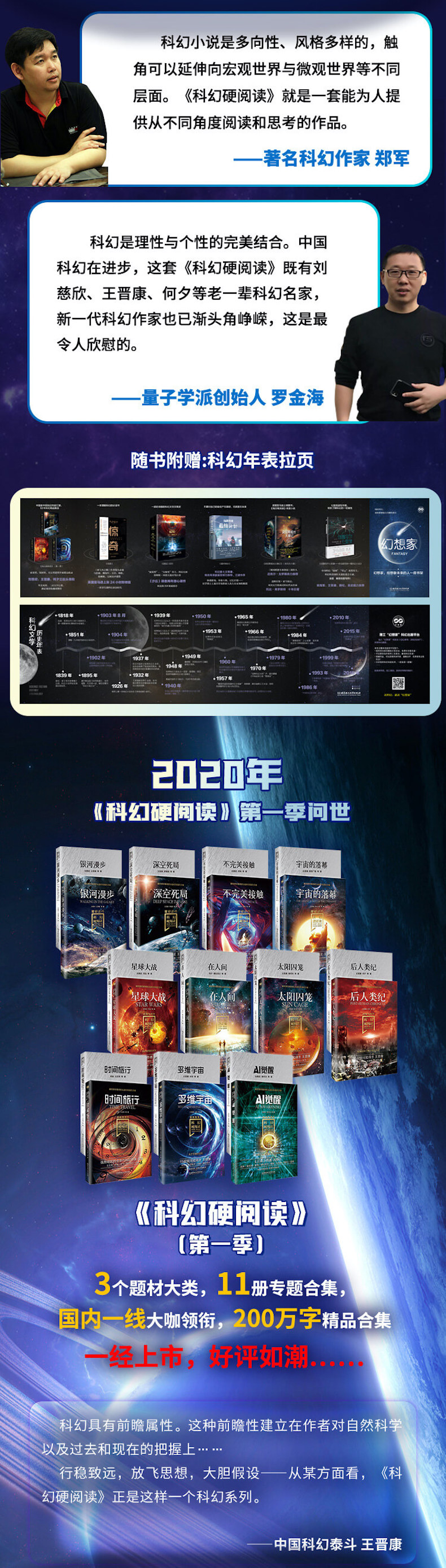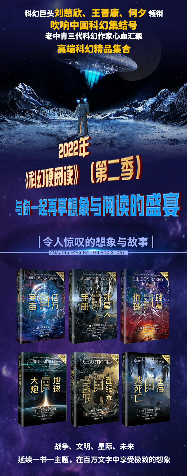 ·《科幻世界》主编姚海军鼎力推荐,刘慈欣、王晋康、何夕等老中青三代科幻作家倾情加盟·十年生聚,十年精华,一套书展现中国科幻十年成果之集大成。· 诙谐、惊险、朋克、恢弘、瑰丽、壮观……引领读者从百万字中阅读到想象的很好。·华美双封+超高性价比,让读者尽享饕餮阅读盛宴!